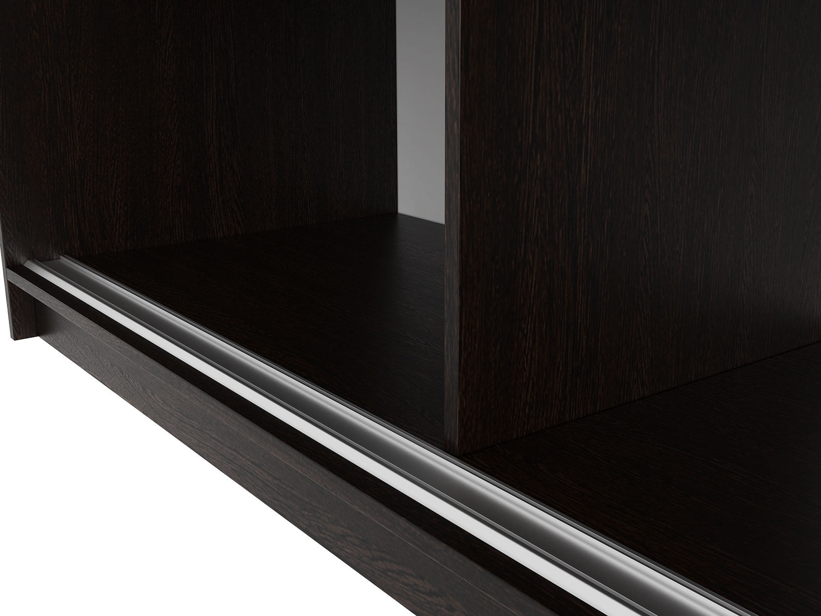 Измерьте ширину проема. Отметьте на боковых стенках шкафа места крепления верхней и нижней направляющих — они должны быть строго параллельны. Отступите 5–7 мм от верхнего торца для верхней направляющей и 3–5 мм от пола — для нижней.