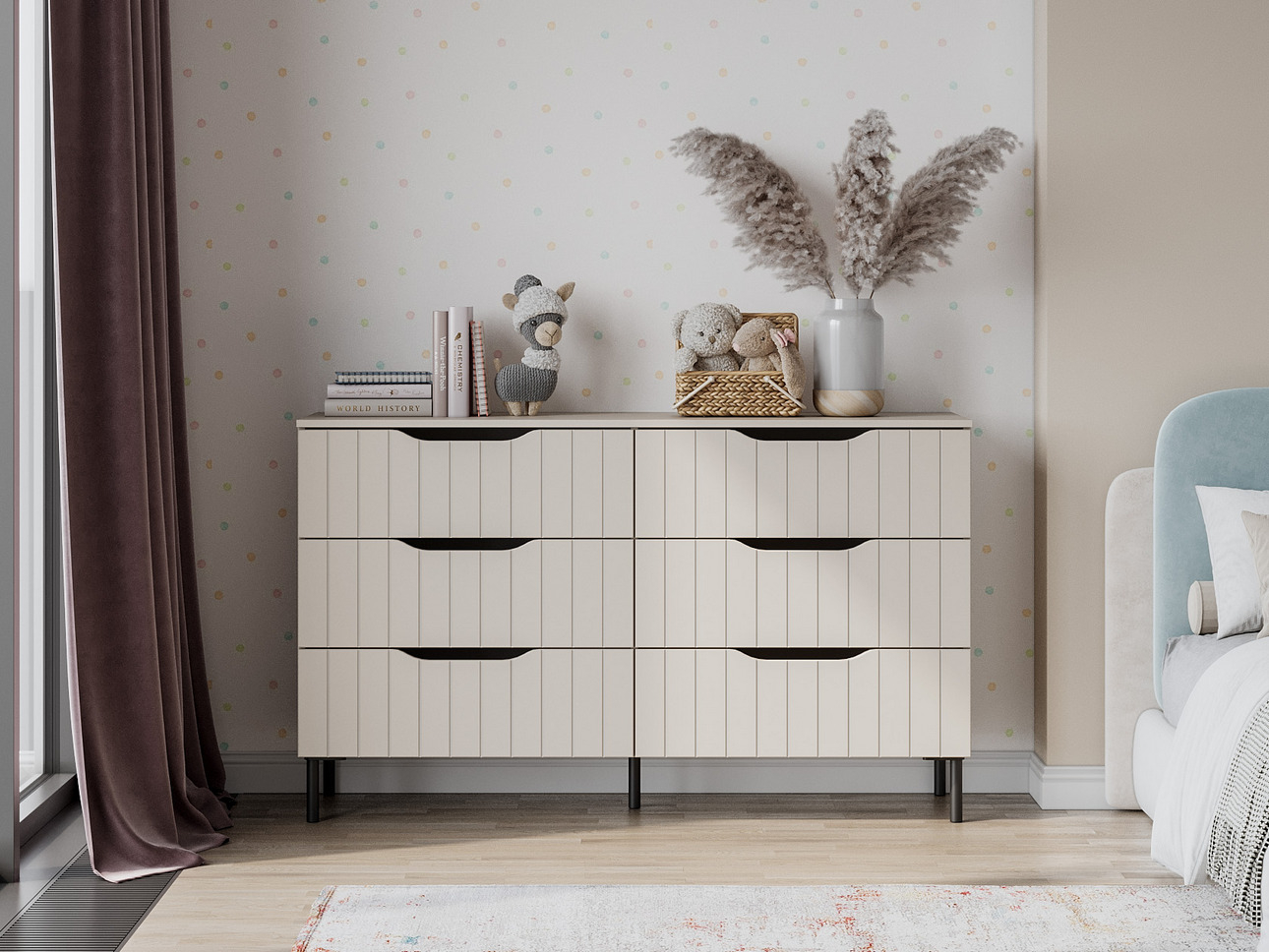 Высокие комоды стоит фиксировать к стене для устойчивости конструкции, особенно если в доме есть дети.