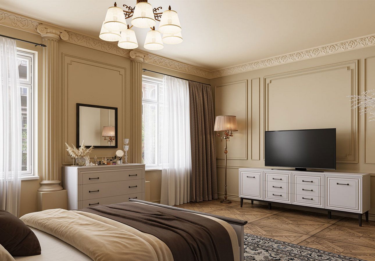 «Декоративные детали могут стать связующим звеном между разными предметами интерьера. Например, комод с латунными ручками удачно дополнит прикроватную тумбу с аналогичной фурнитурой, а фасад с фрезеровкой может перекликаться с фактурой изголовья кровати. Так вы создадите целостную композицию без лишних усилий».