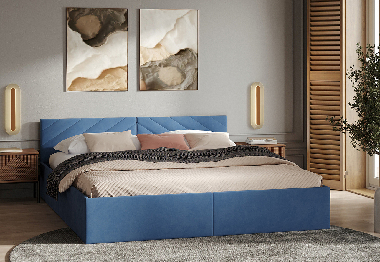 Кровать в тон стен визуально расширит границы тесной спальни. В просторной комнате удачно смотрятся как спокойные, так и насыщенные оттенки.