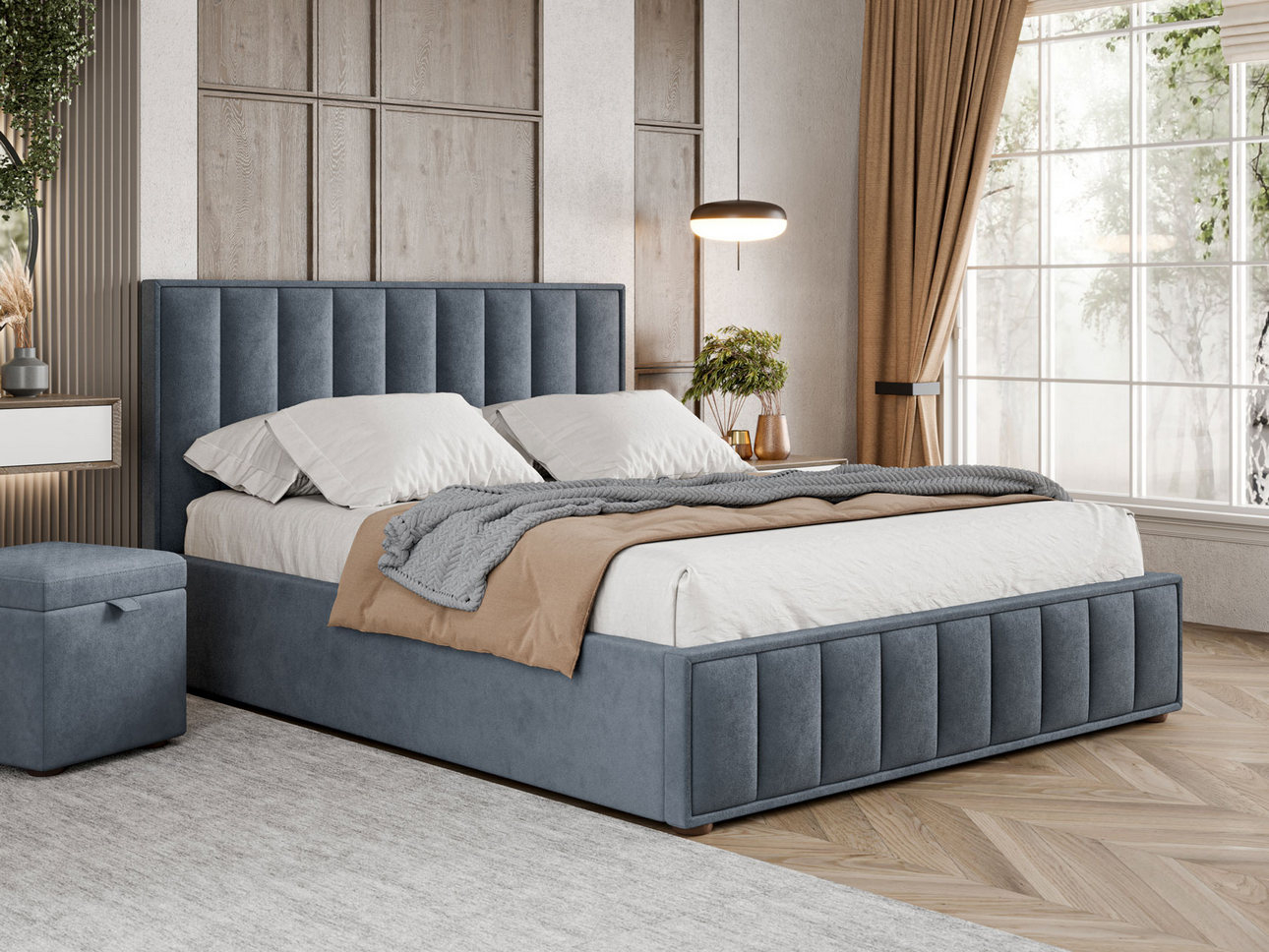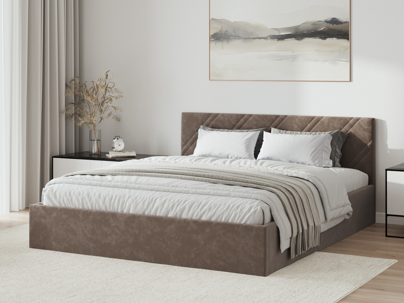 Нейтральный оттенок кровати — универсальный вариант, который удачно дополняет любой интерьер, что очень удобно, если в скором будущем предстоит ремонт или переезд в другую квартиру.