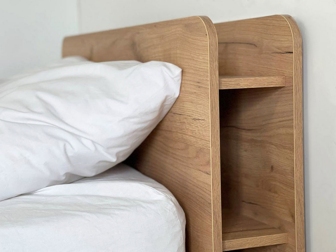 Ниши в изголовье — неожиданное, но очень практичное решение. Встроенные полки или открытые отсеки заменяют прикроватную тумбочку. Служат стеллажом для телефона, книга, очков, небольшой колонки или лампы. Всё хранится под рукой, но не на полу.
