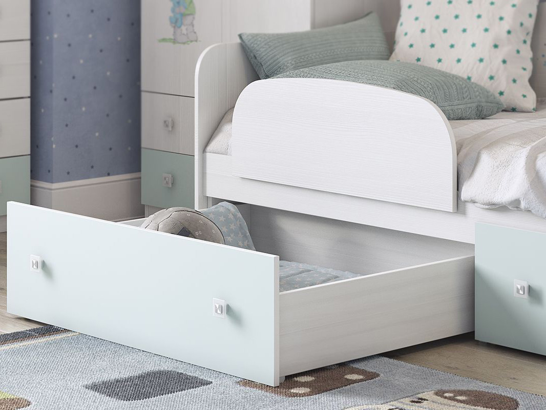 Мебель выполнена из ЛДСП 16 мм и обработана кромкой ПВХ. Фасады украшены принтерными рисунками. В выдвижных ящиках предусмотрены роликовые направляющие.