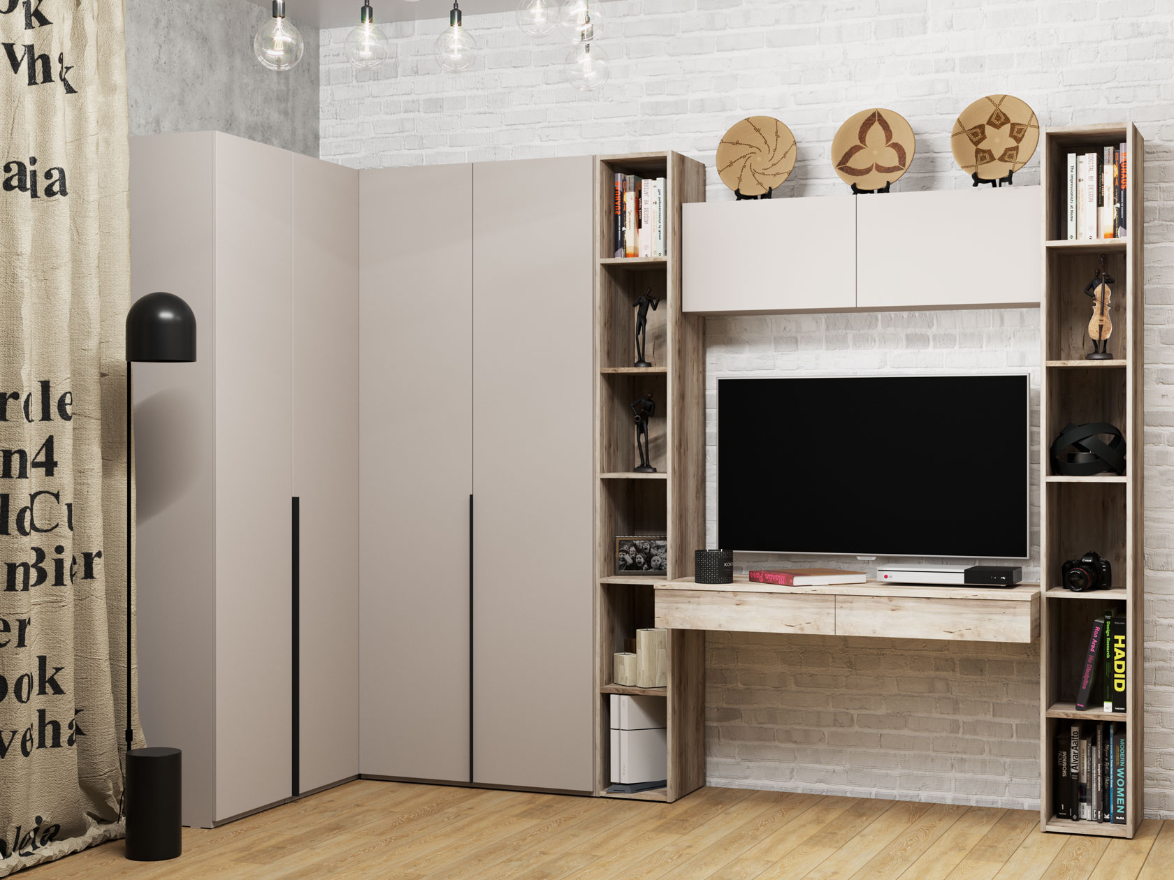 - Особенности С распашным шкафом, Со стеллажом, С местом под ТВ, С комодом, С рабочим местом, С угловым шкафом, С кроватью с подъемным механизмом, С полками