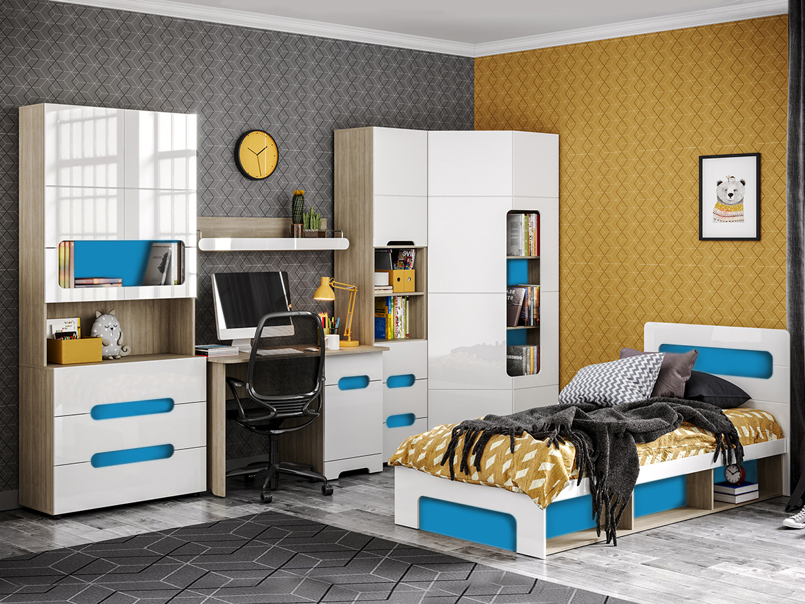 Модульная детская Палермо Юниор сделают комнату вашего ребенка уютной, светлой и практичной. Интересное исполнение понравится и дошкольнику, и подростку, а функциональная конструкция модулей позволит максимально рационализировать пространство и научиться держать все вещи и предметы в порядке.