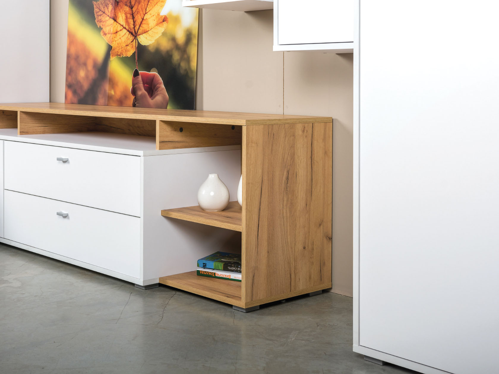 Модульные гостиные Бель помогут оформить стильную и функциональную обстановку. Коллекция предусматривает множество мест для хранения: открытые и закрытые отделения, а также вместительные выдвижные ящики. Открытые ниши помогут декорировать пространство, сделав его еще более милым и домашним.