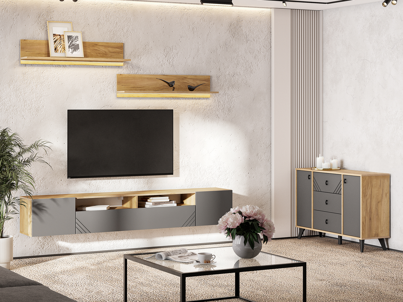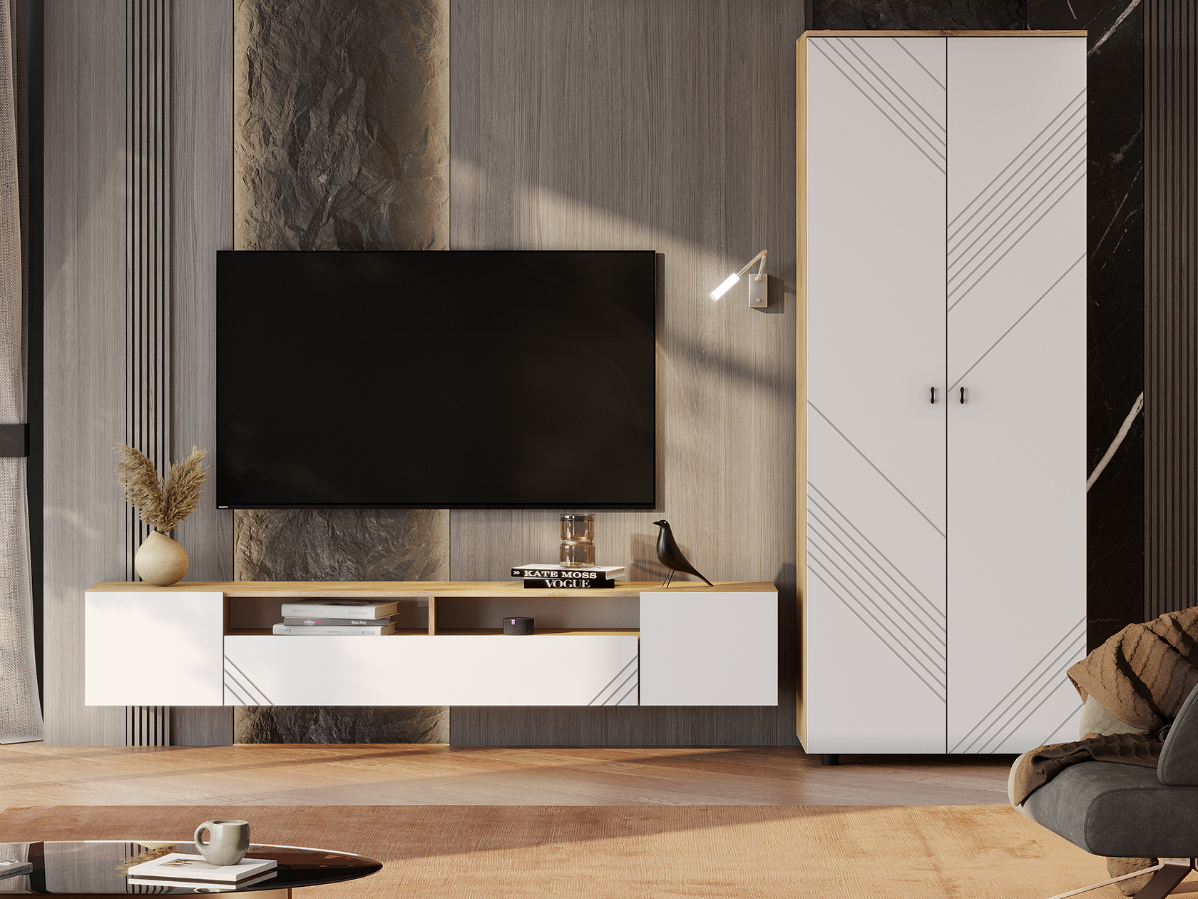 Модульные гостиные Кайло станут эстетичным дополнением интерьера, где царят гармония и уют. Функциональные элементы помогут организовать удобное хранение всех необходимых вещей и разнообразить обстановку предметами декора. Стильная фрезеровка и акцентная фурнитура придают мебели особую элегантность и неповторимый шарм.