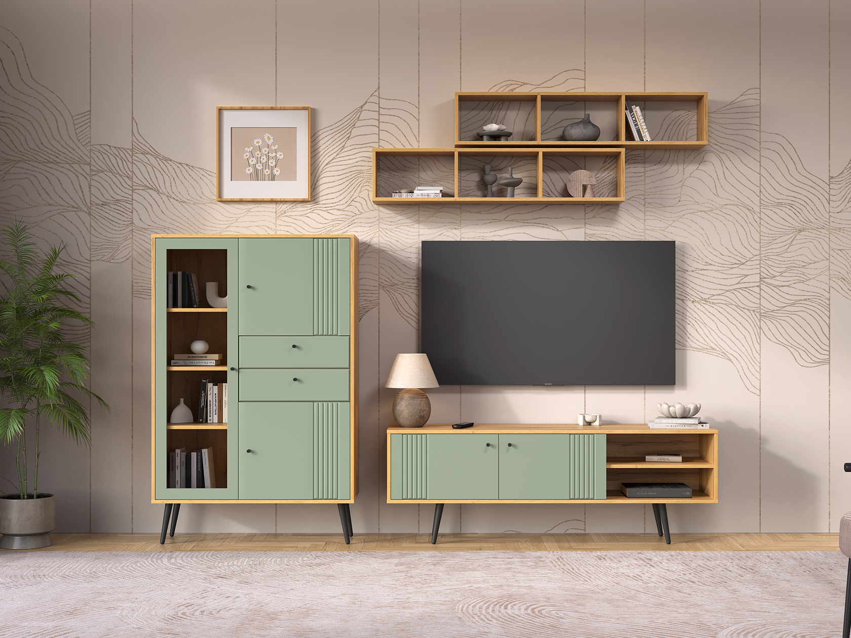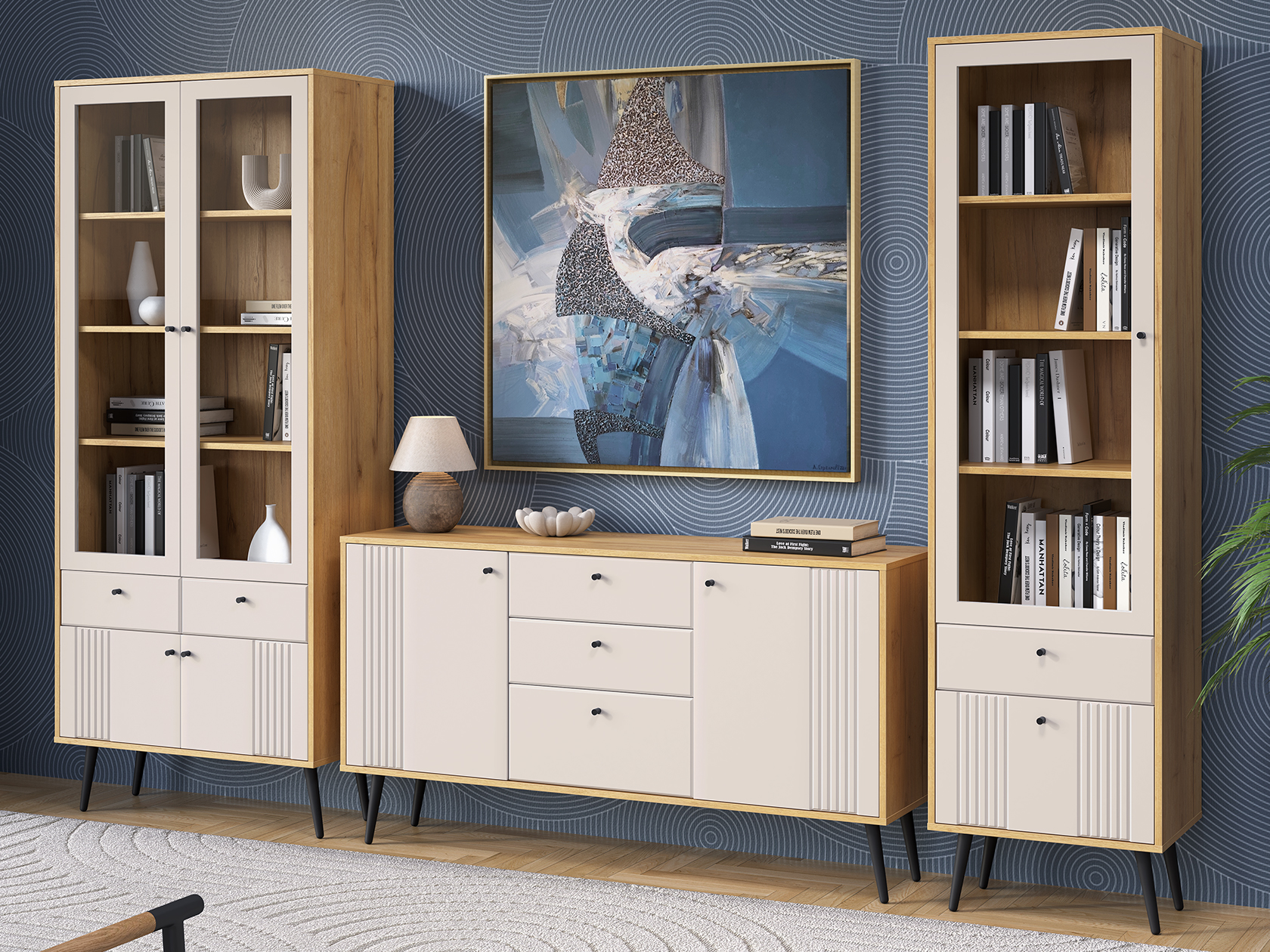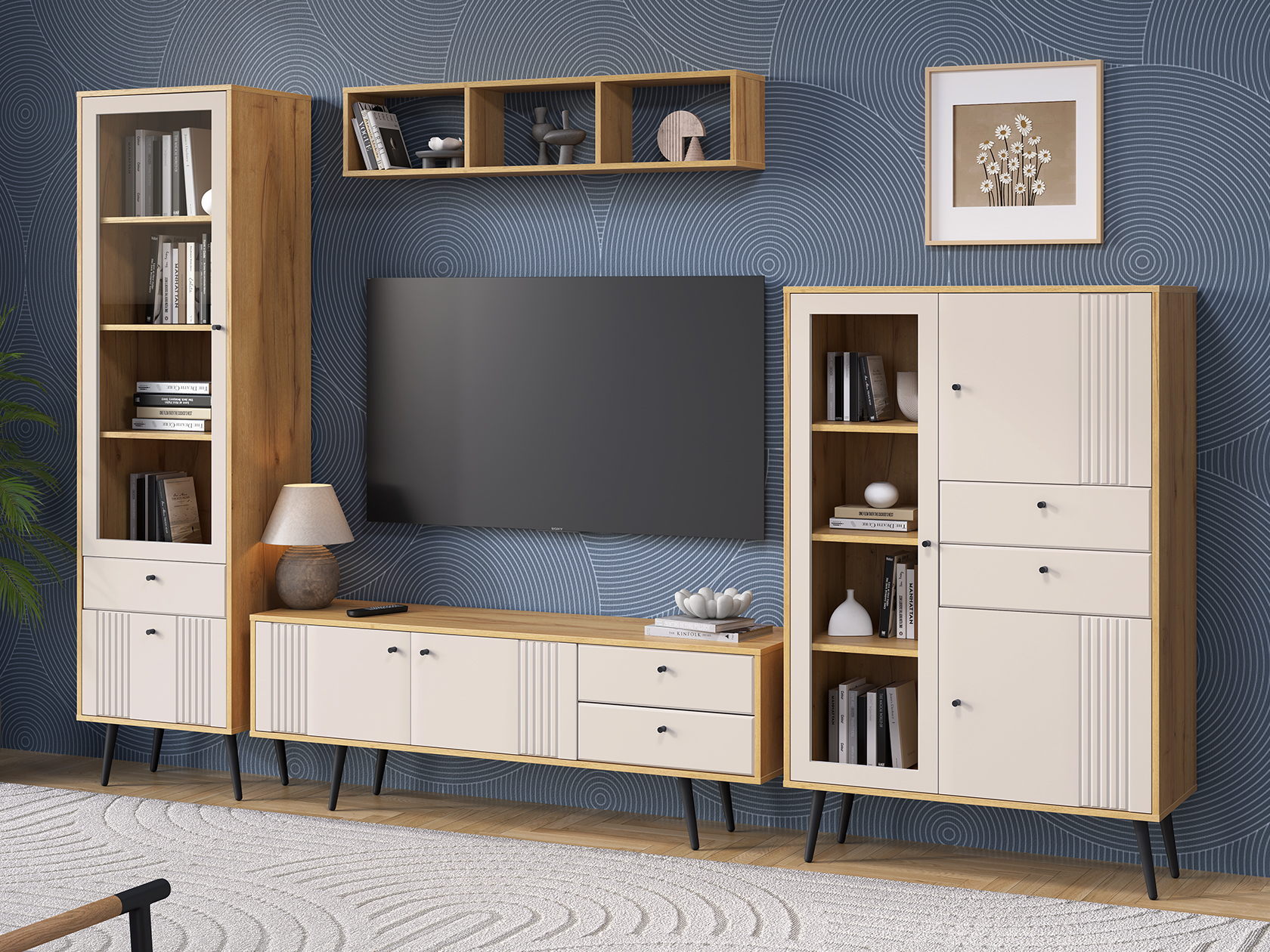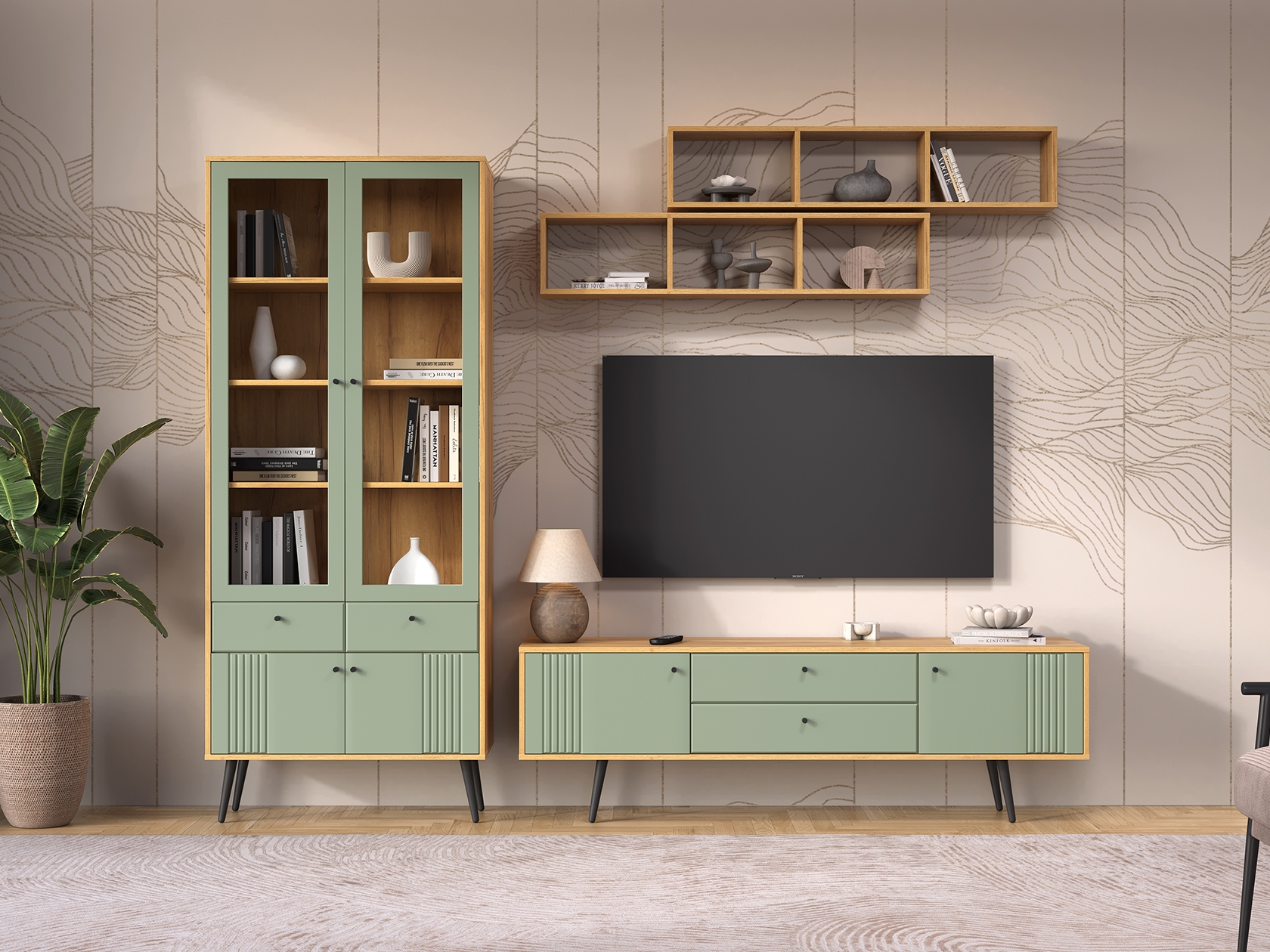 Модульные гостиные Вега Саксония — это привлекательный дизайн и практичное наполнение. Элегантные фасады с фрезеровкой в виде вертикальных линий придают мебели строгую симметрию и отлично дополняют интерьер. Разнообразие мест для хранения позволяет аккуратно расположить книги, предметы декора и посуду.