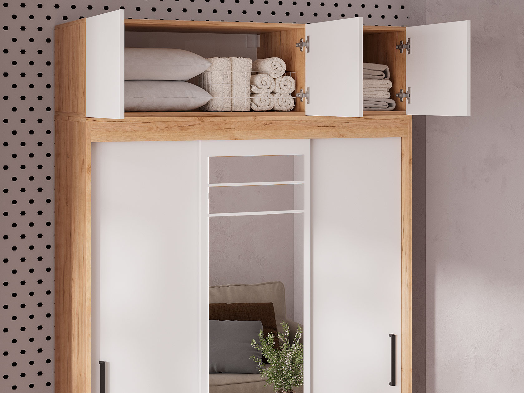 - Особенности С зеркалом, С антресолями, Со шкафом-купе, С распашным шкафом