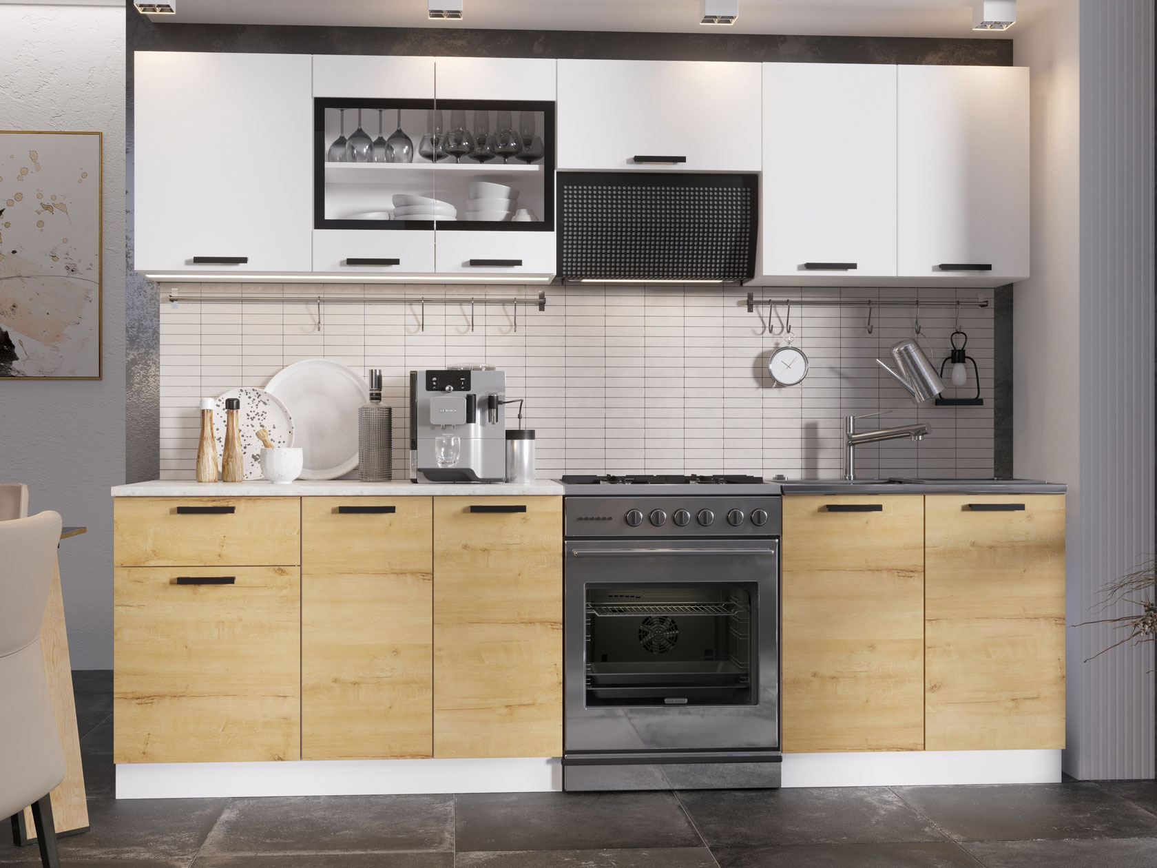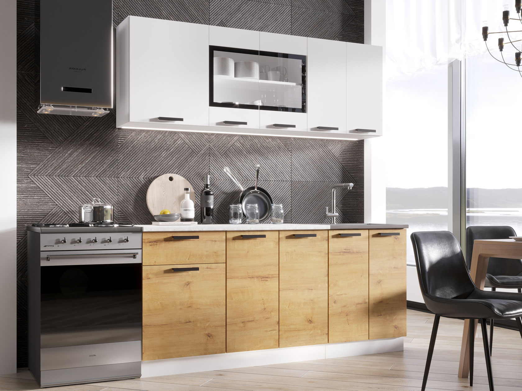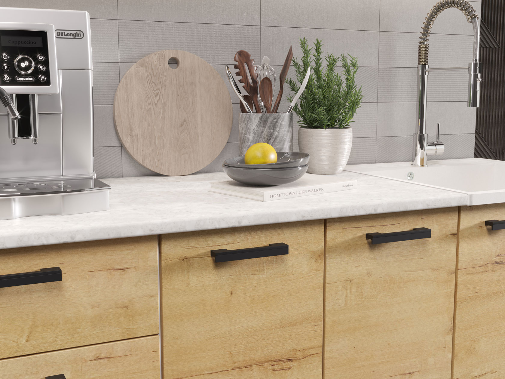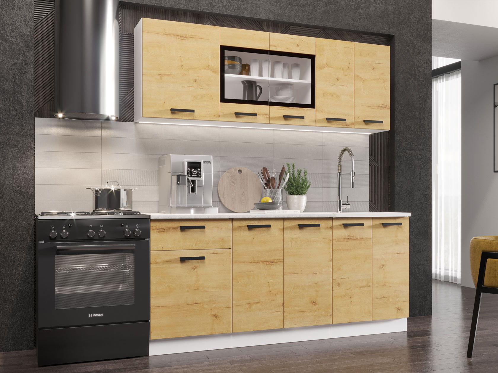 Модульные кухни Хозяюшка позволят организовать стильное и функциональное пространство, где комфортно готовить и удобно хранить посуду, бытовую технику и прочую утварь. Коллекция привлекает простым и в то же время эффектным дизайном, где особое внимание уделено деталям. Лаконичные фасады с контрастными ручками отлично смотрятся в современных интерьерах.