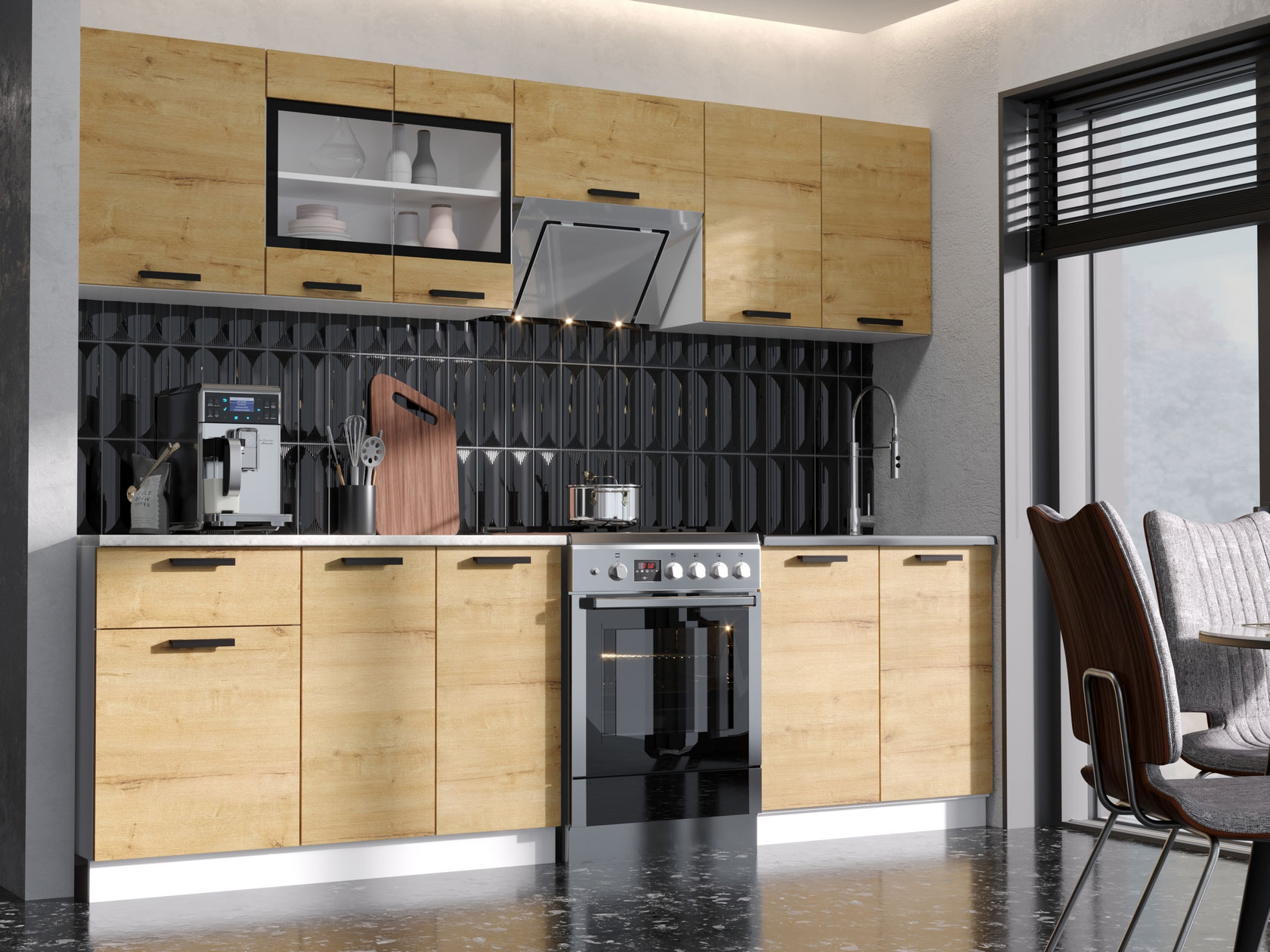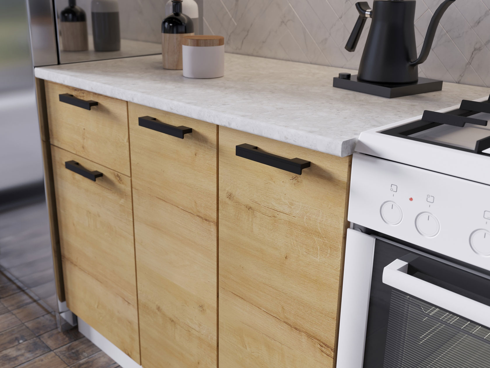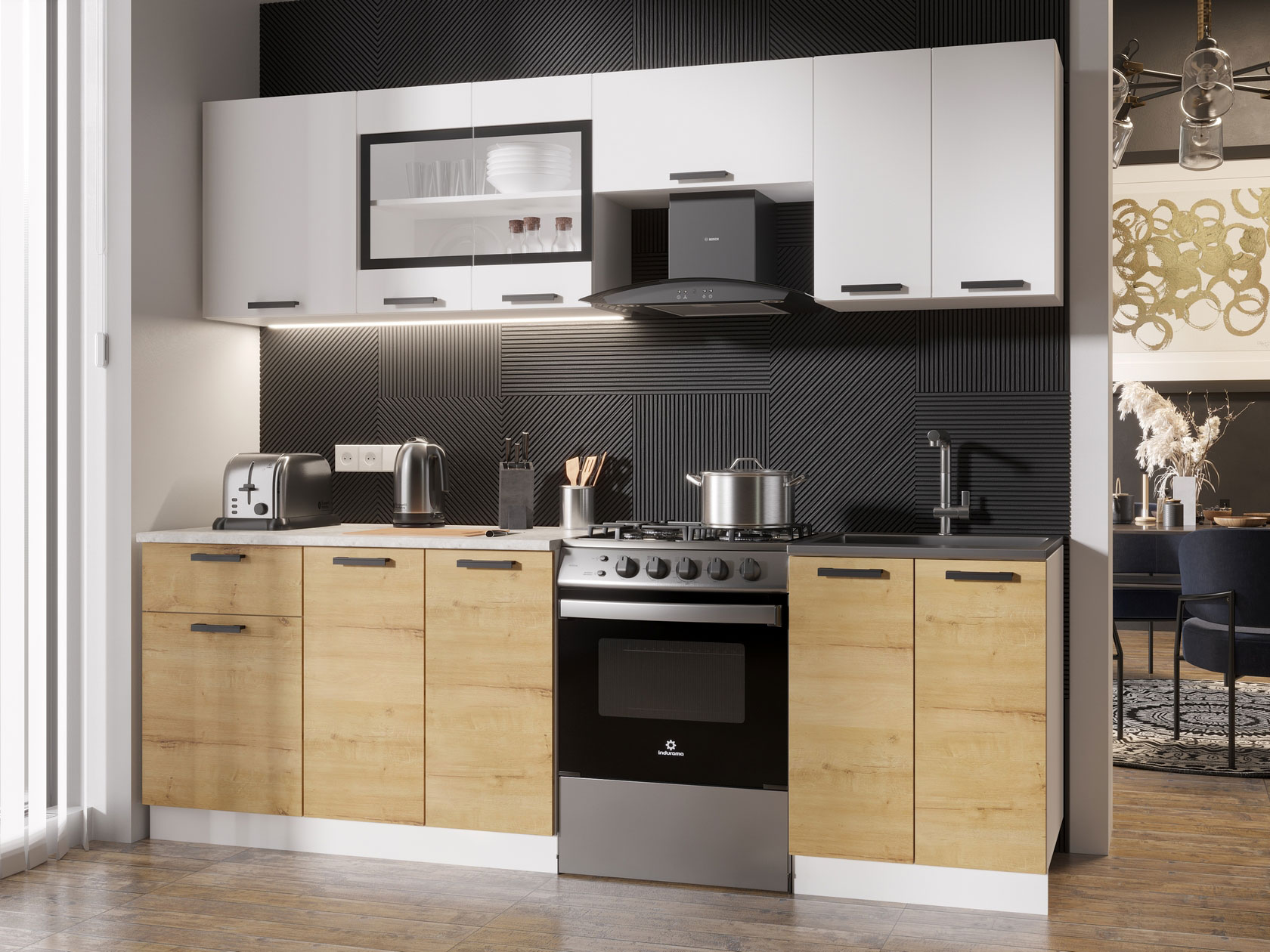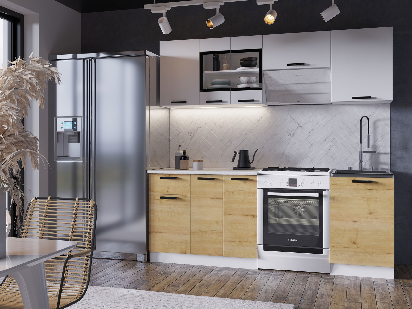 Модульные кухни Хозяюшка позволят организовать стильное и функциональное пространство, где комфортно готовить и удобно хранить посуду, бытовую технику и прочую утварь. Коллекция привлекает простым и в то же время эффектным дизайном, где особое внимание уделено деталям. Лаконичные фасады с контрастными ручками отлично смотрятся в современных интерьерах.