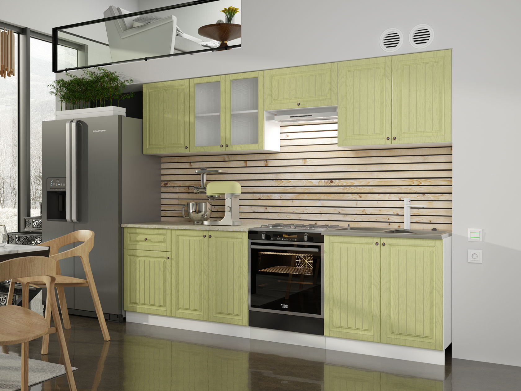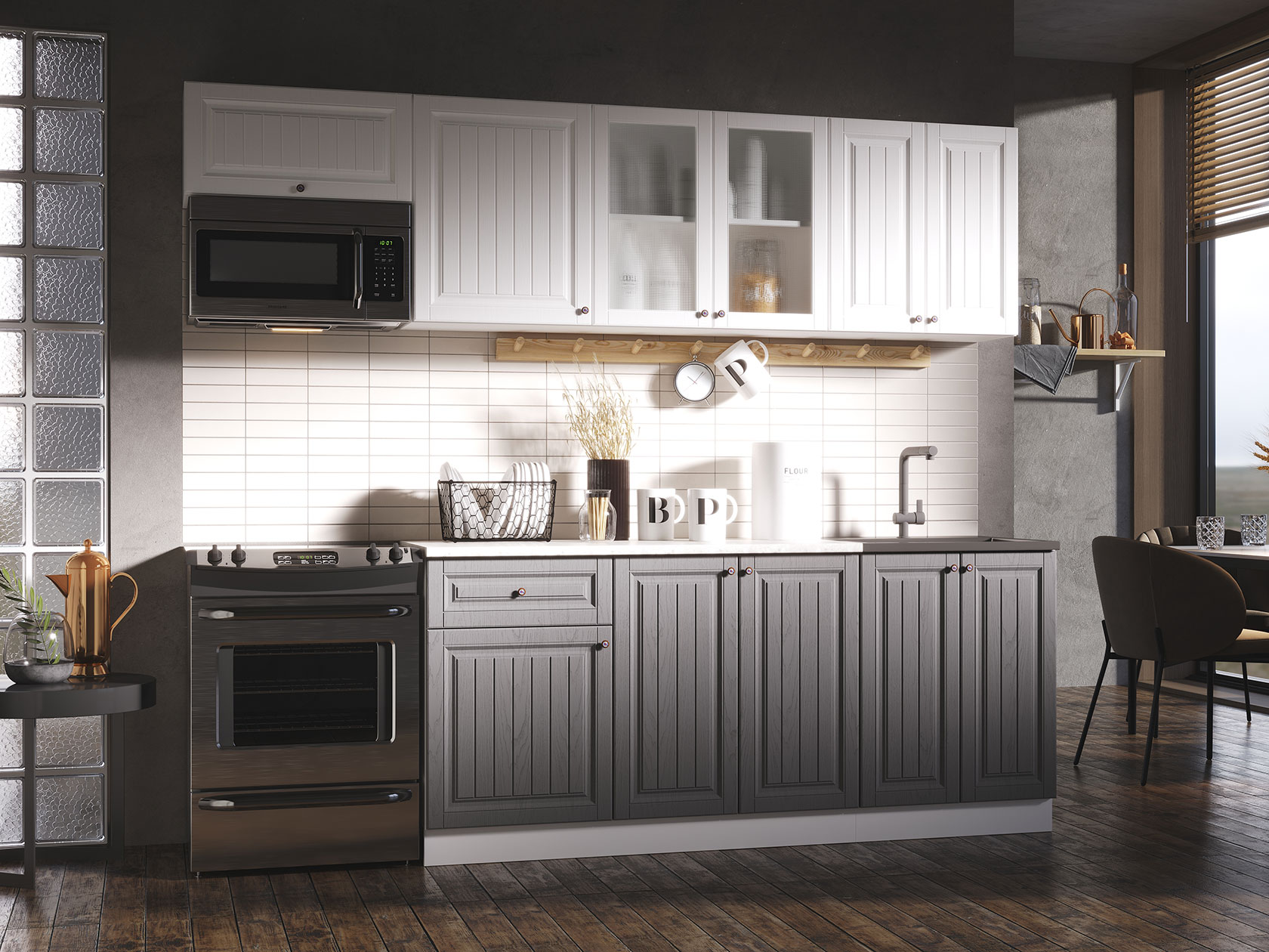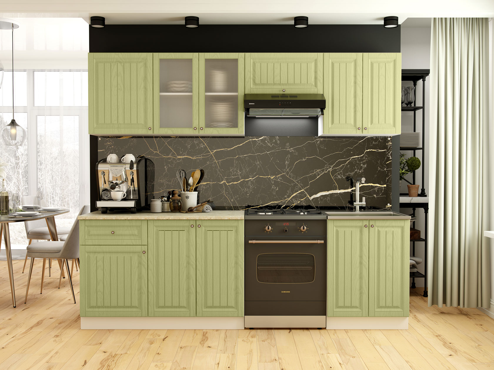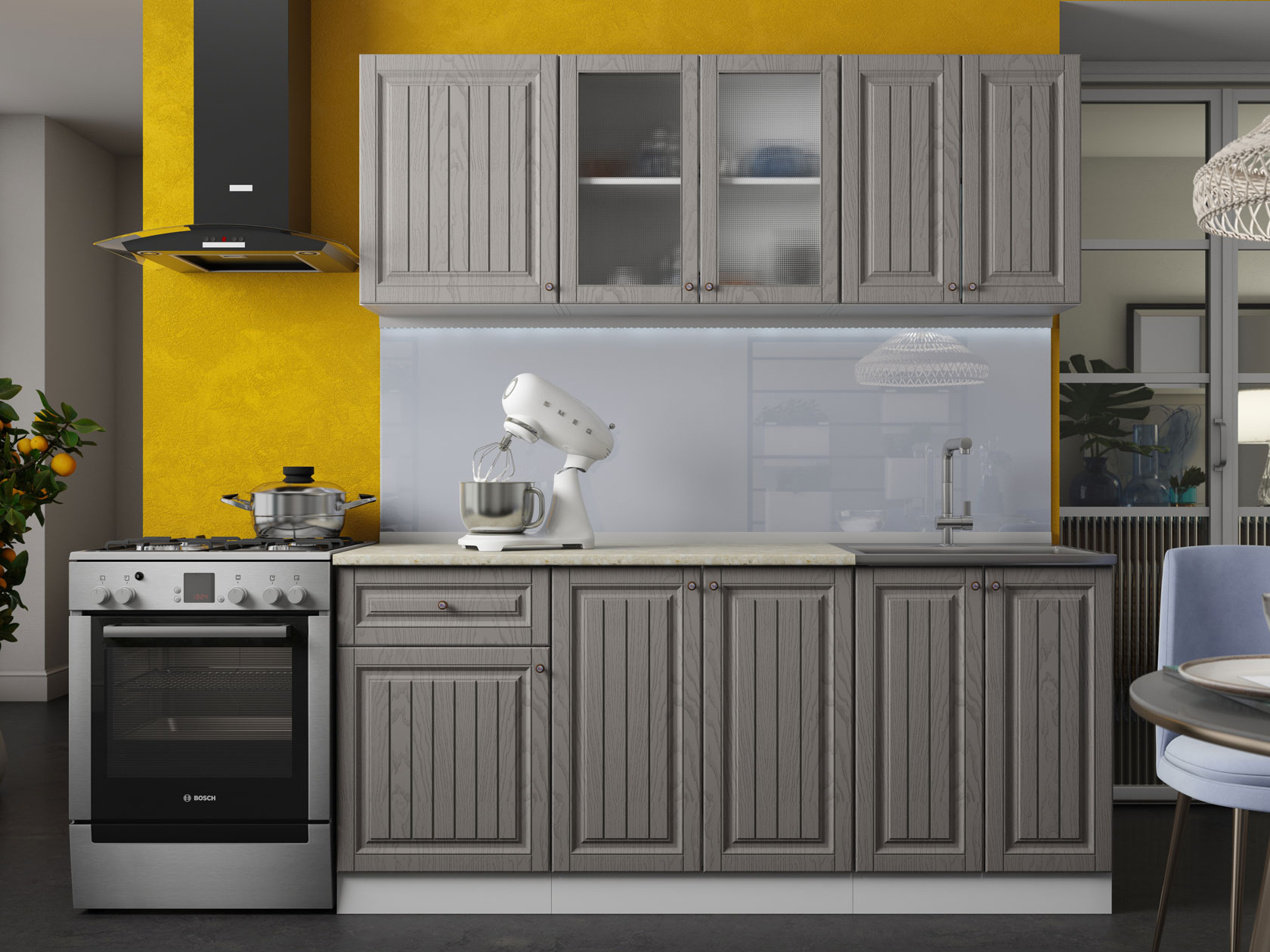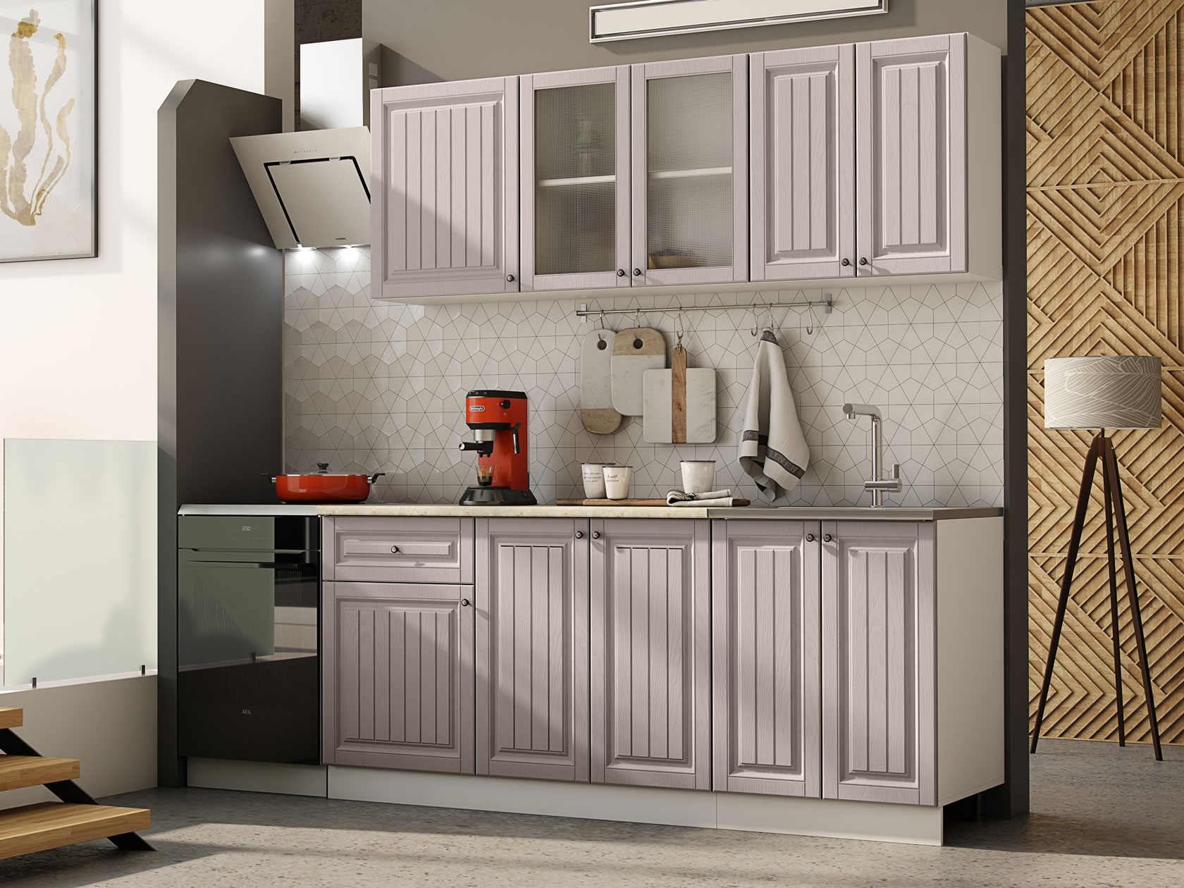 Модульные кухни Хозяюшка помогут обустроить стильное и функциональное пространство, в котором удобно готовить и хранить посуду, разную утварь, сыпучие продукты и специи. Фасады с фрезеровкой и текстурой натурального дерева создают теплую домашнюю атмосферу. Такой дизайн отлично сочетается с разными интерьерными стилями: от классики до прованса.