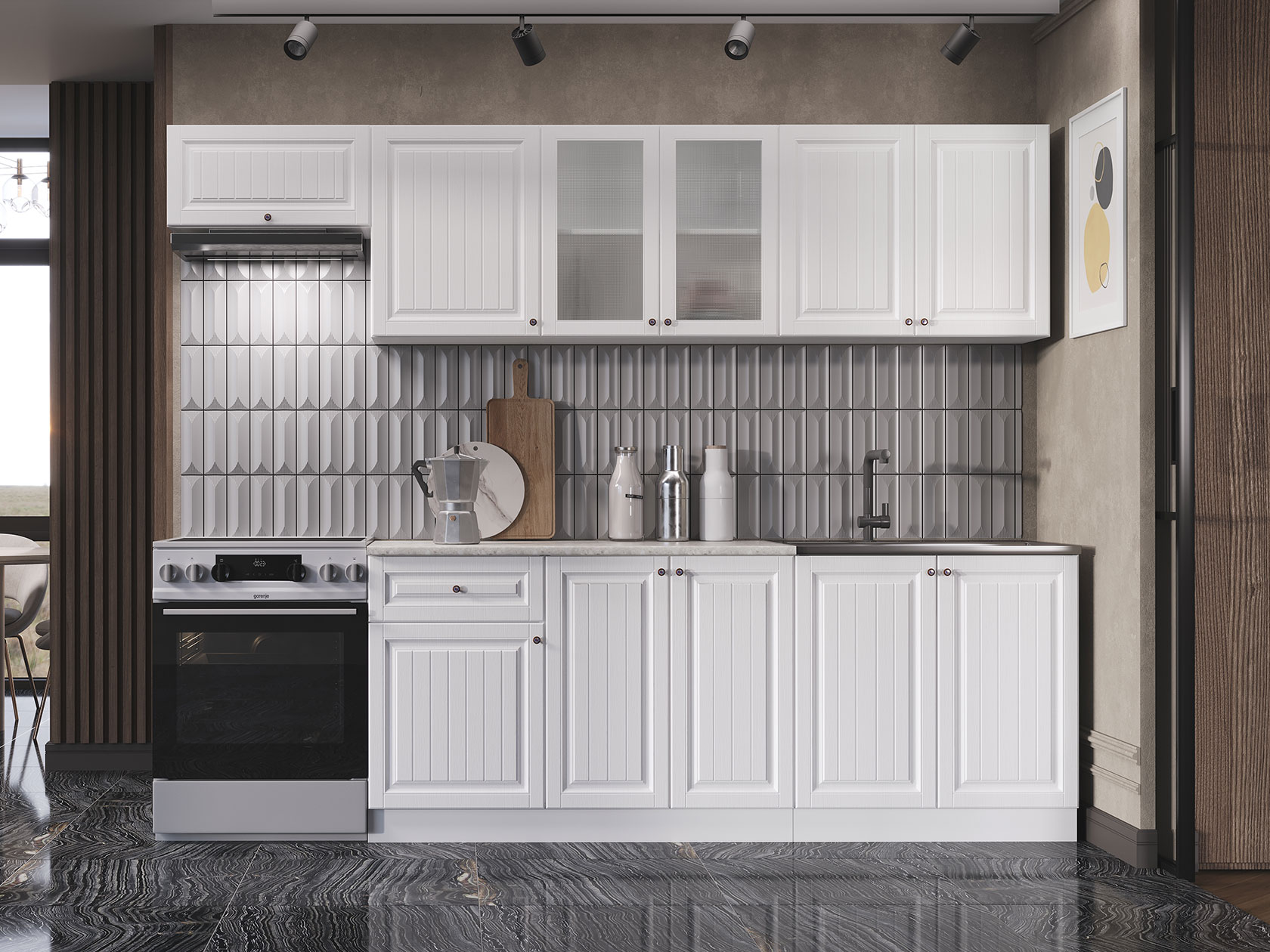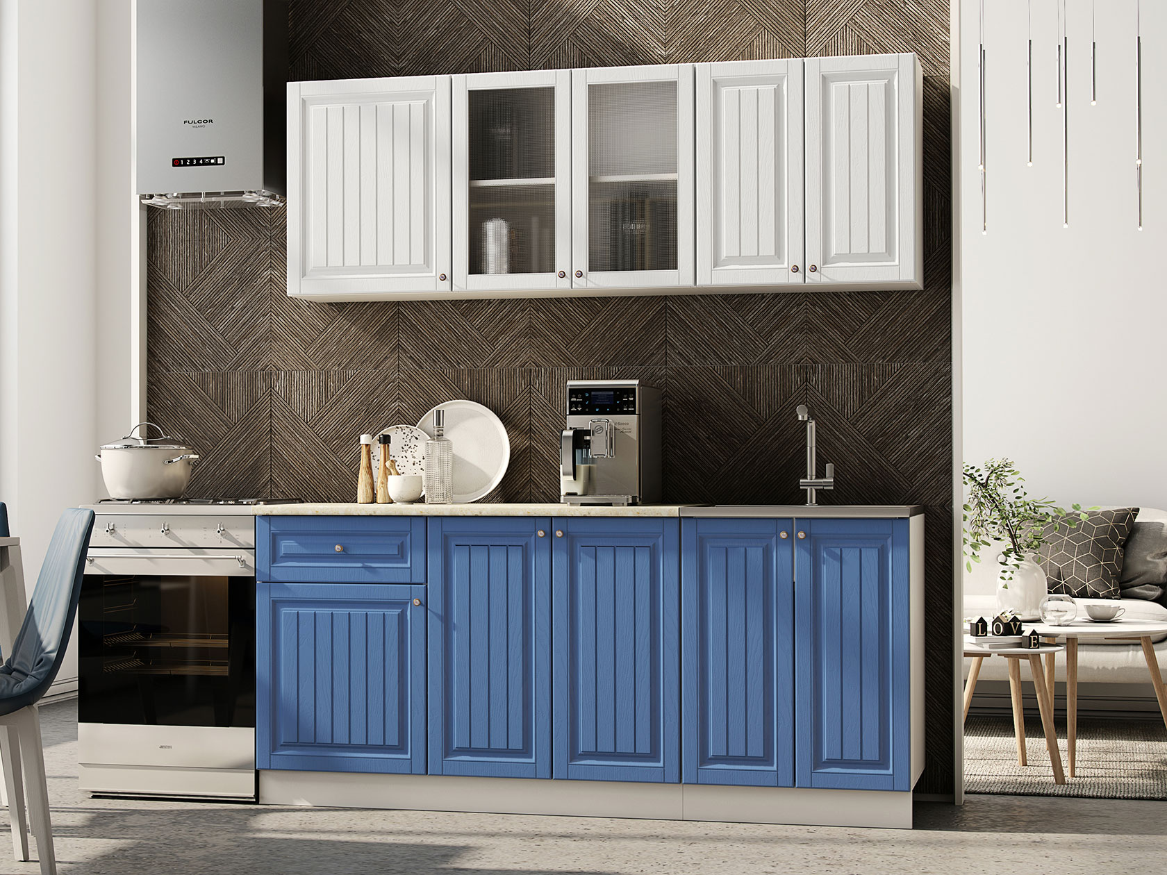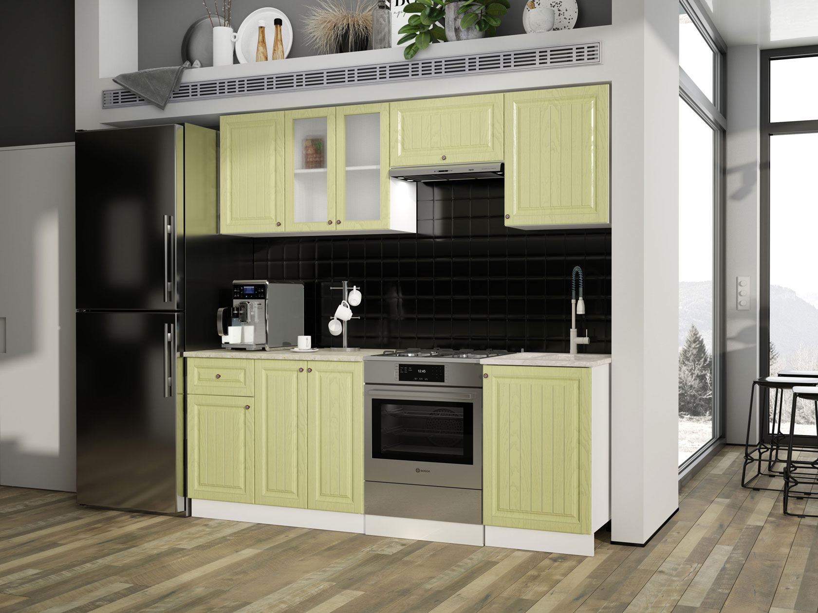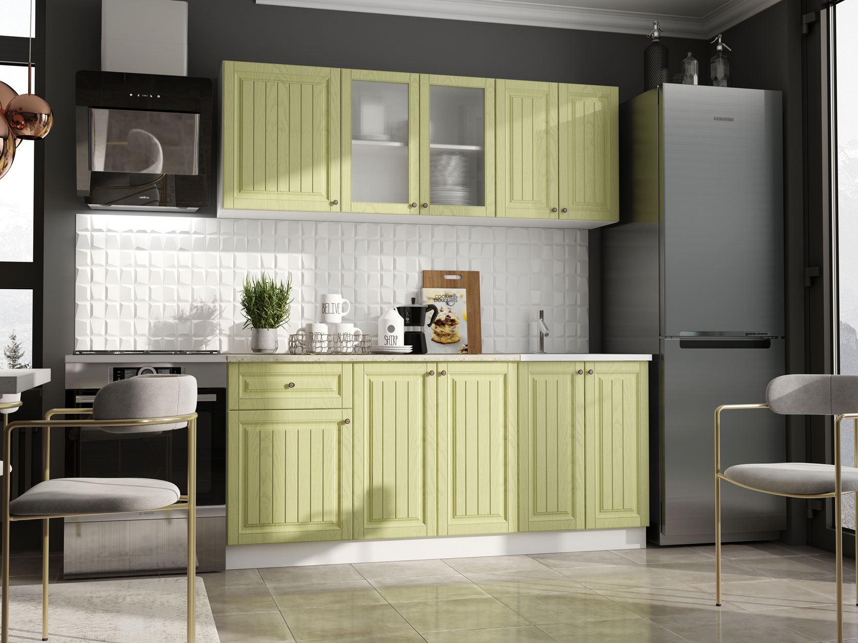 Модульные кухни Хозяюшка помогут обустроить стильное и функциональное пространство, в котором удобно готовить и хранить посуду, разную утварь, сыпучие продукты и специи. Фасады с фрезеровкой и текстурой натурального дерева создают теплую домашнюю атмосферу. Такой дизайн отлично сочетается с разными интерьерными стилями: от классики до прованса.
