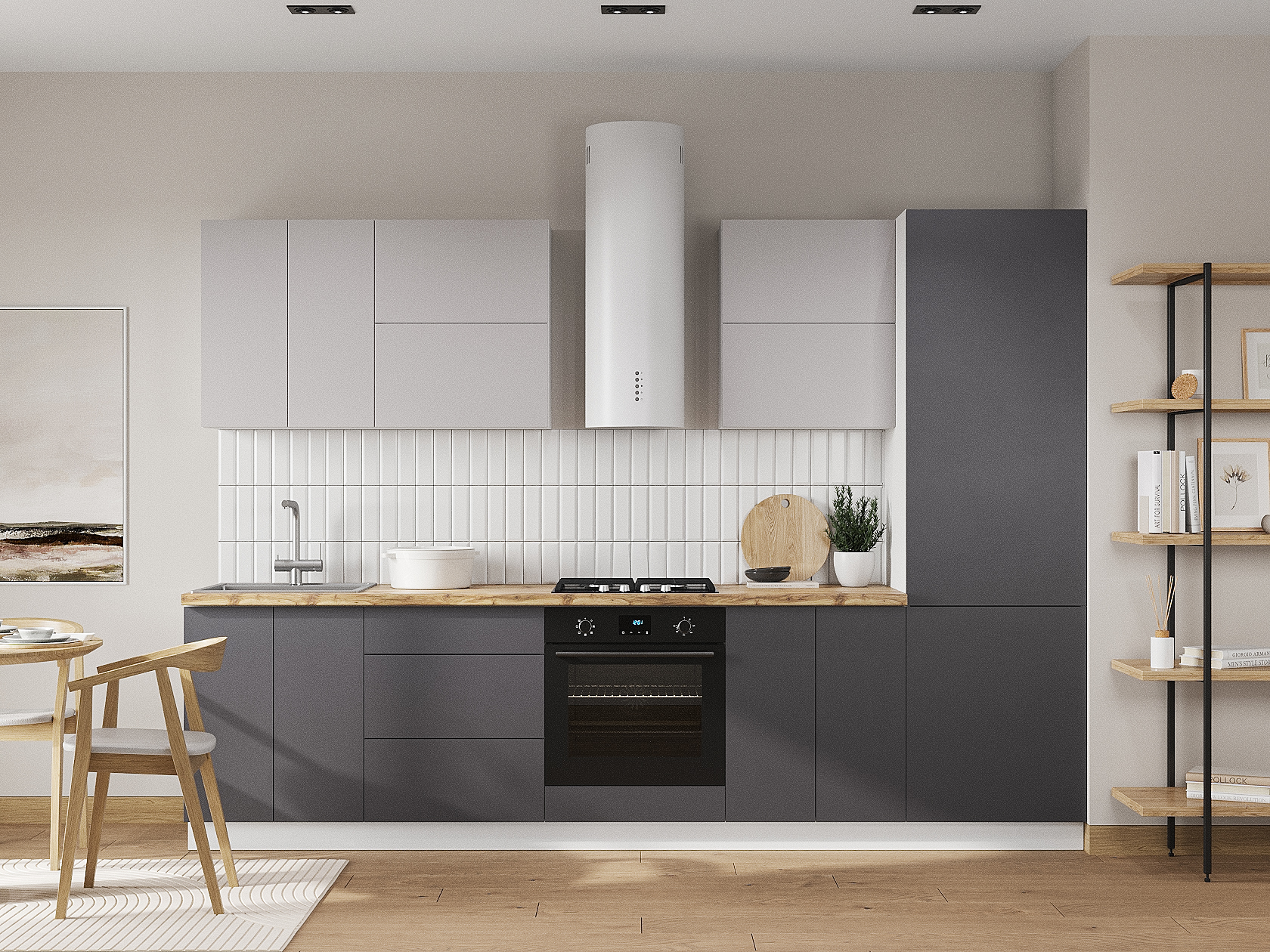 Модульные кухни Модерн понравятся тем, кто ценит простые строгие линии, а также хочет создать современный и функциональный интерьер. Несколько цветовых решений позволяют оформить пространство на любой вкус. В коллекции представлено множество разнообразных элементов, с которыми легко обустроить эргономичную рабочую зону с удобной системой хранения.