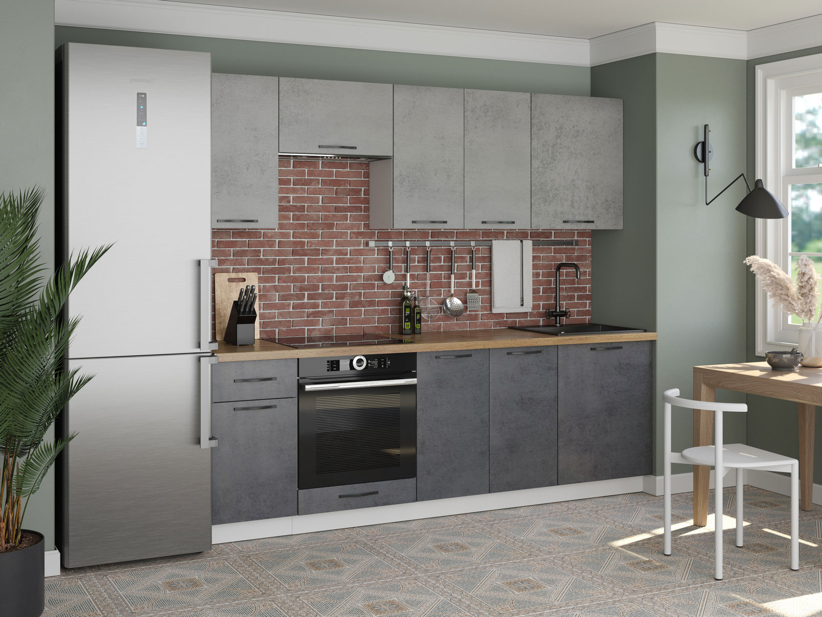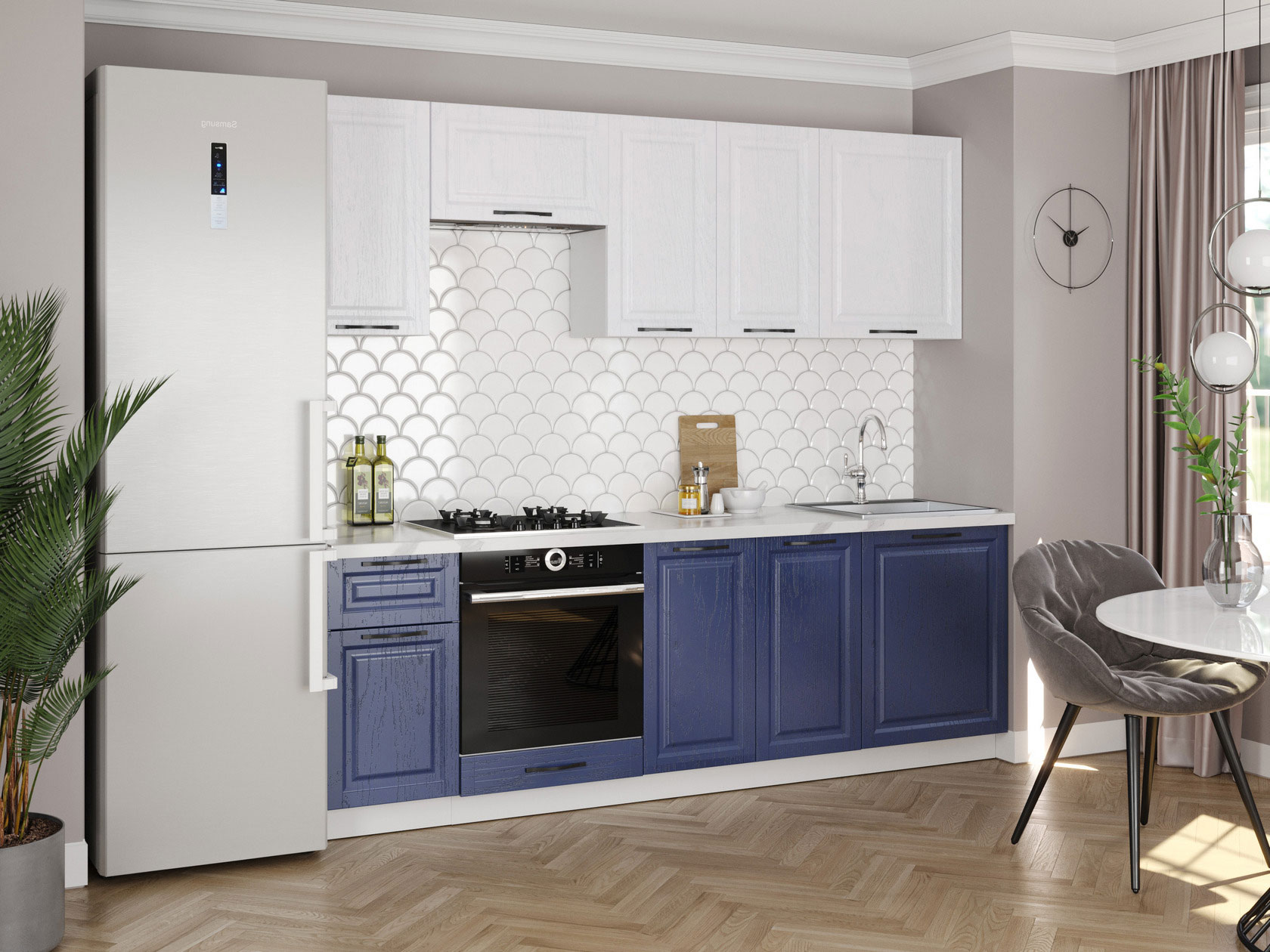 В состав серии входят дополнительные аксессуары, которые помогут эстетично завершить образ кухонного гарнитура: столешницы, плинтусы, заглушки и планка.