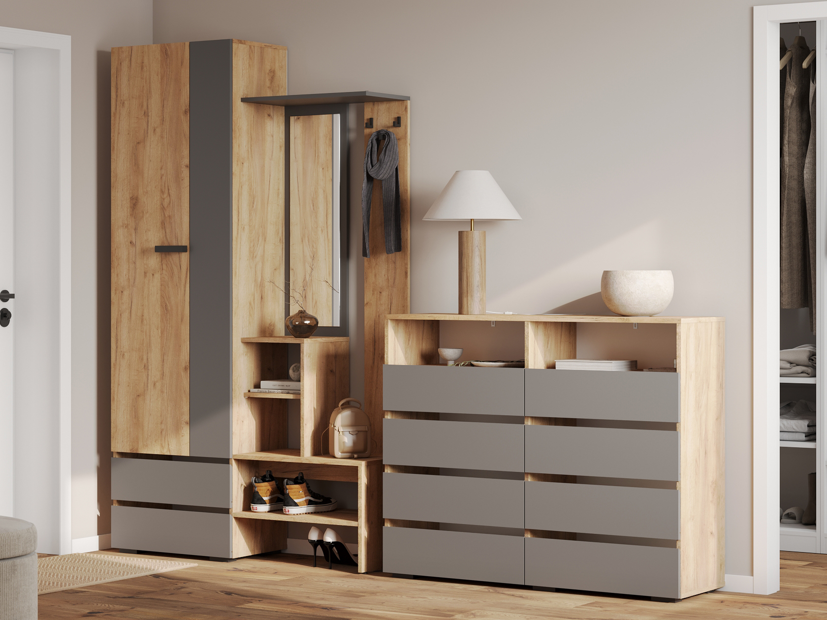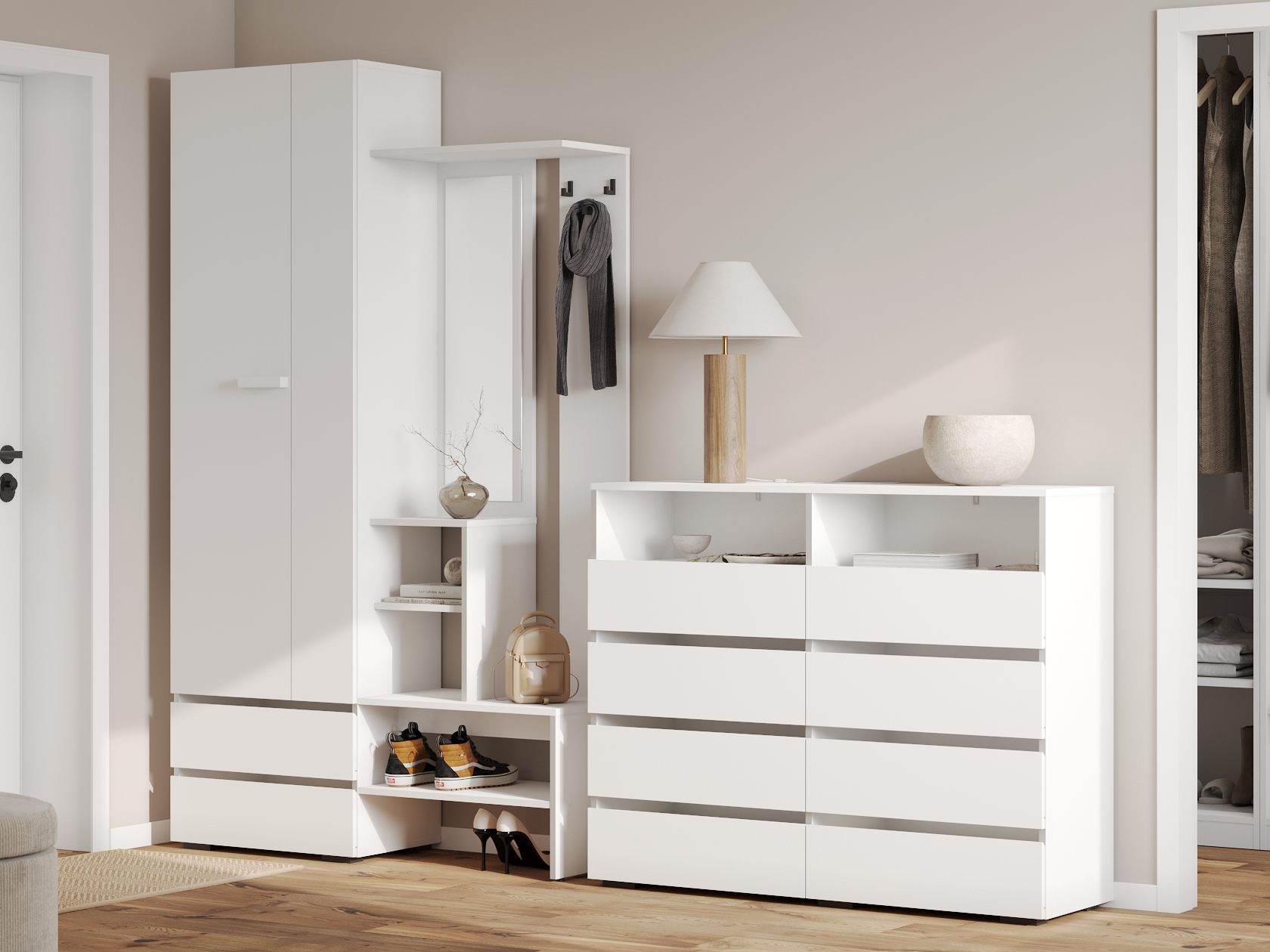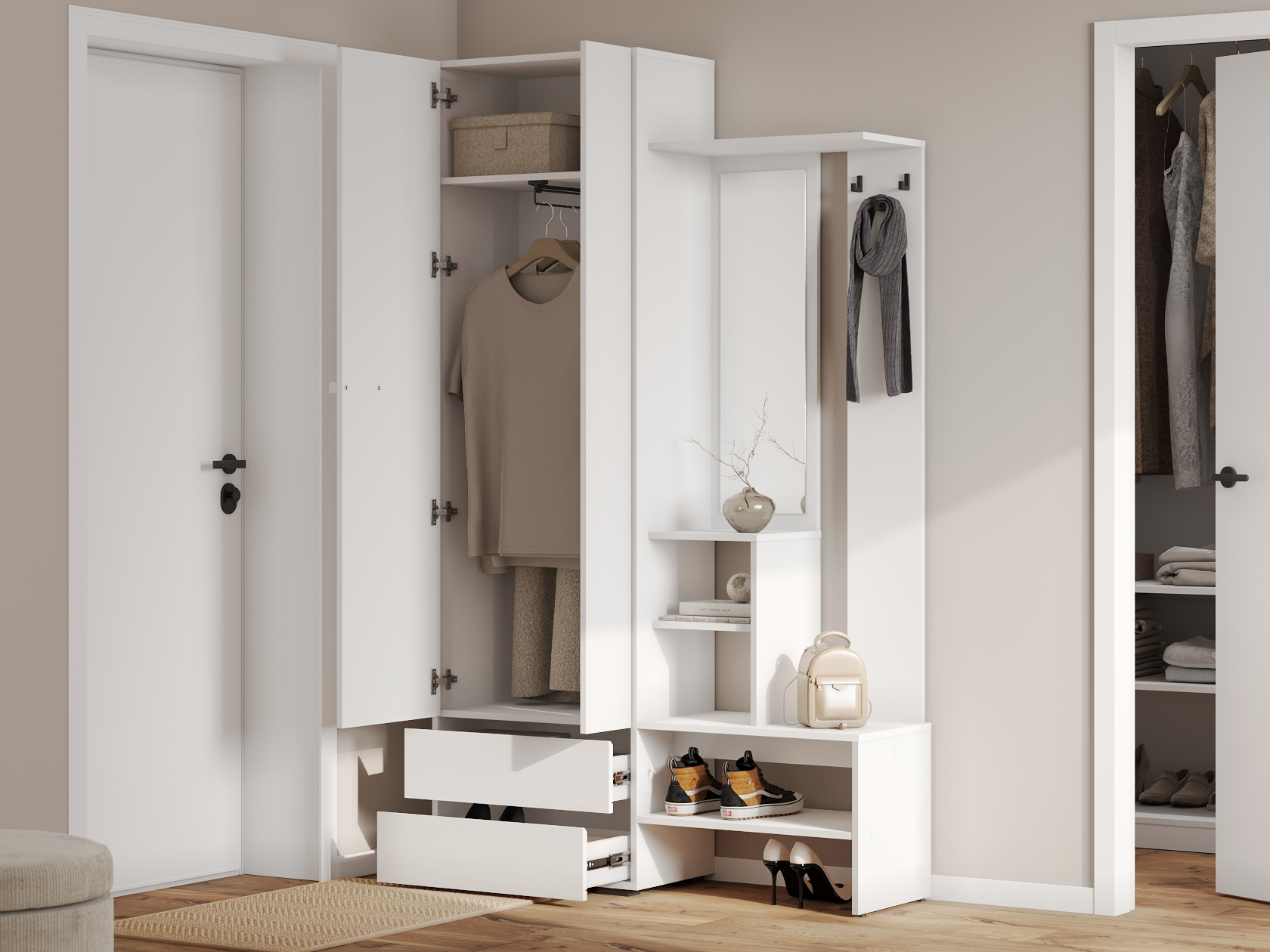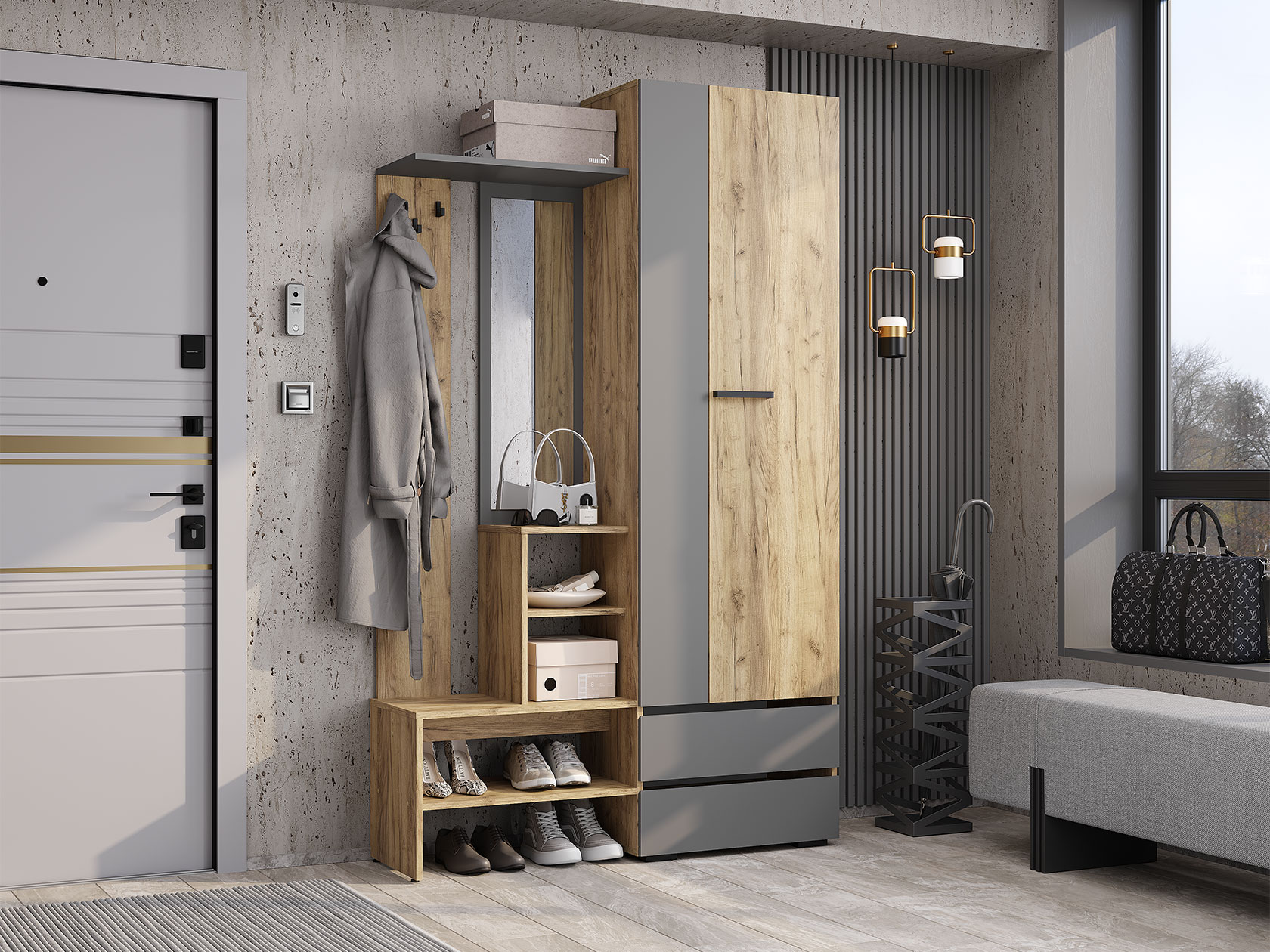 - Особенности С зеркалом, С открытой вешалкой, С распашным шкафом, Без места под ТВ, С комодом