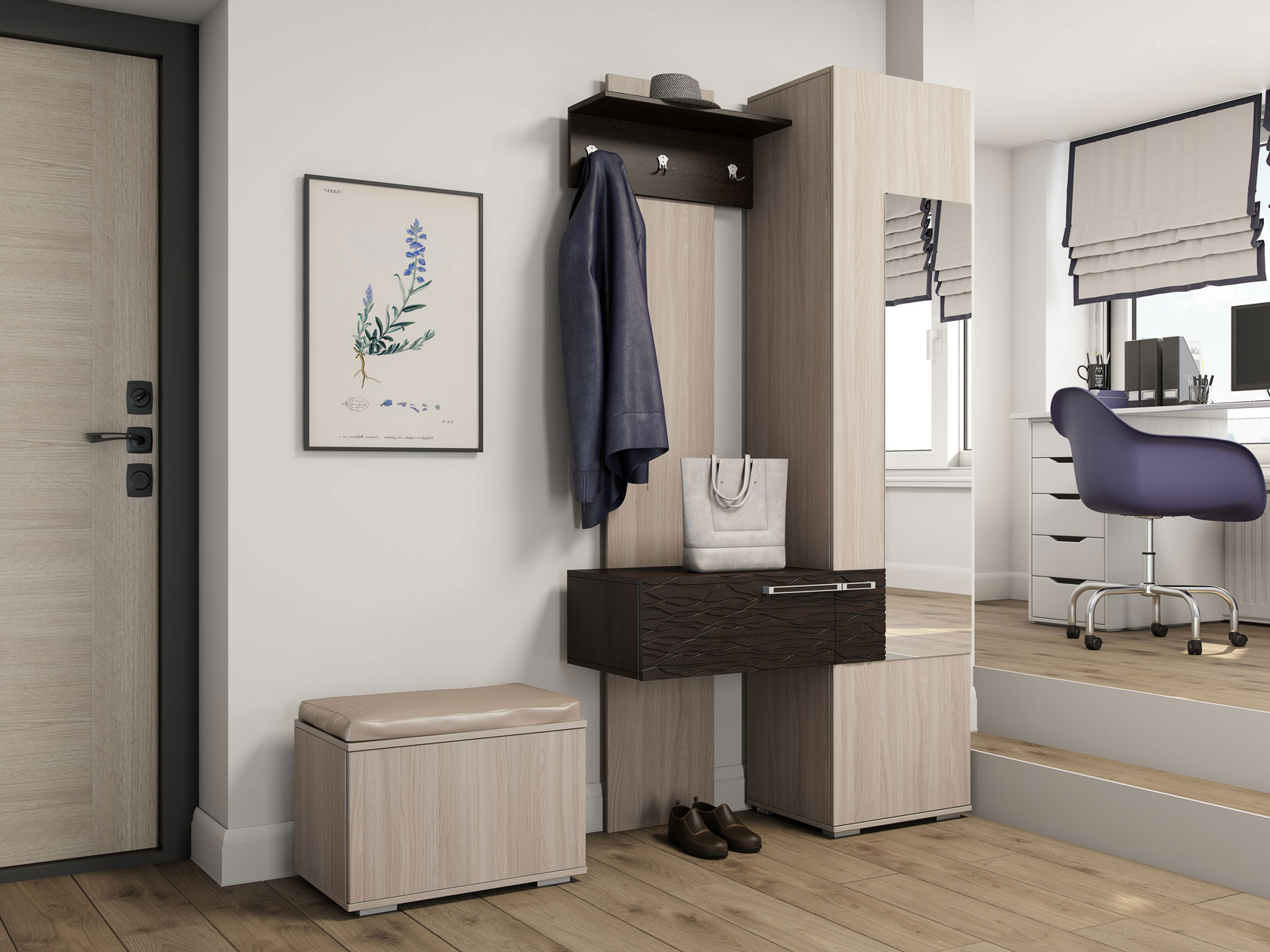 - Особенности С зеркалом, С открытой вешалкой, С распашным шкафом, С сиденьем, Со шкафом, Недорогая