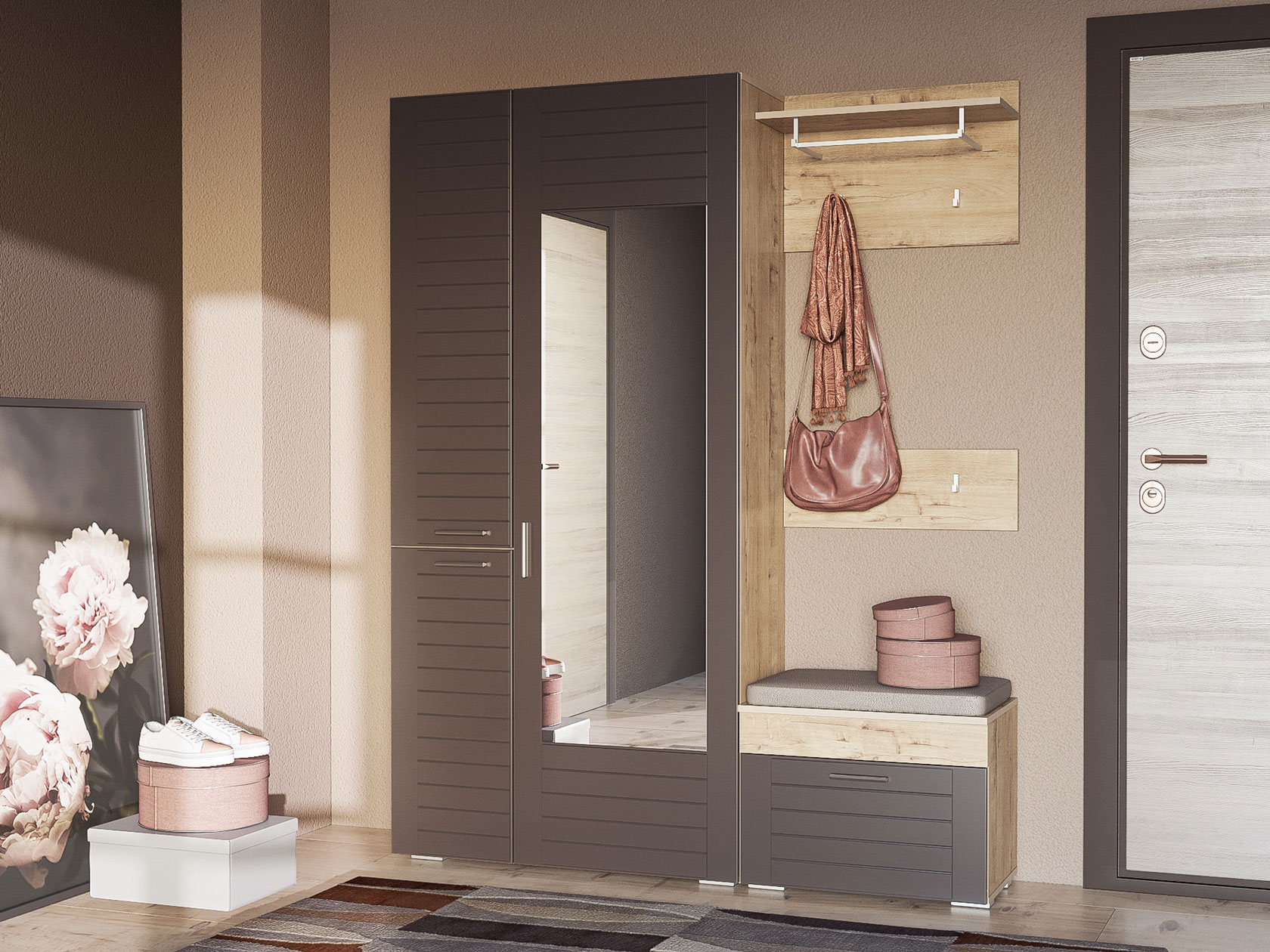 - Особенности С зеркалом, С открытой вешалкой, С распашным шкафом, С сиденьем, С комодом, С банкеткой