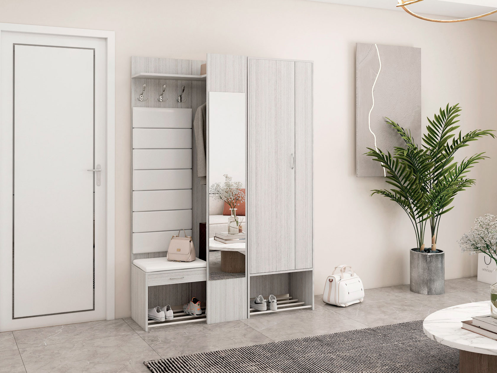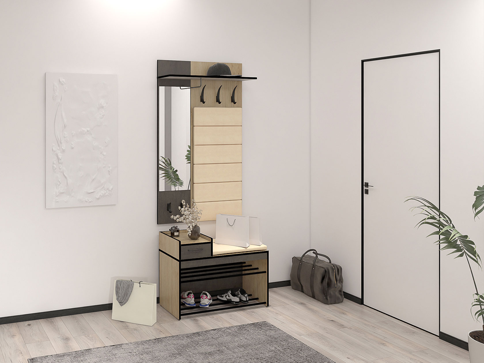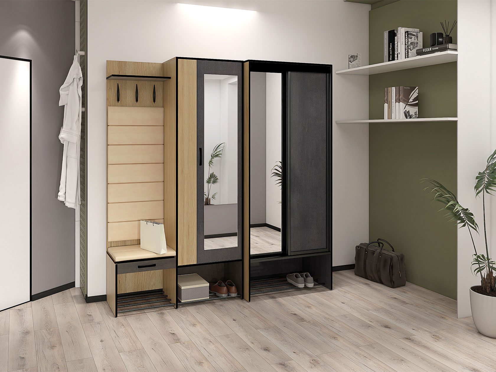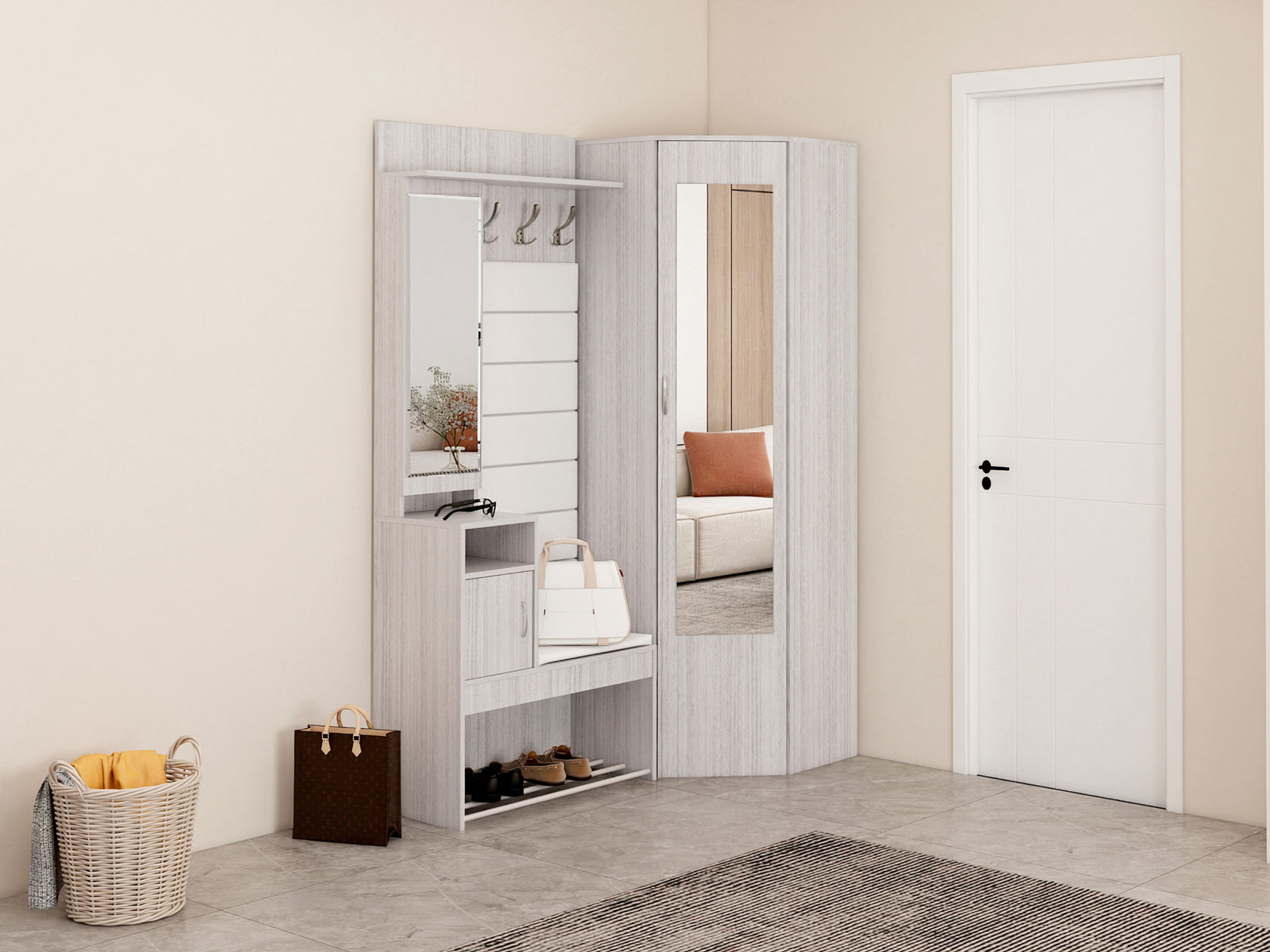 - Особенности С зеркалом, С открытой вешалкой, Со шкафом-купе, С распашным шкафом, С сиденьем, Без места под ТВ, С угловым шкафом, С банкеткой