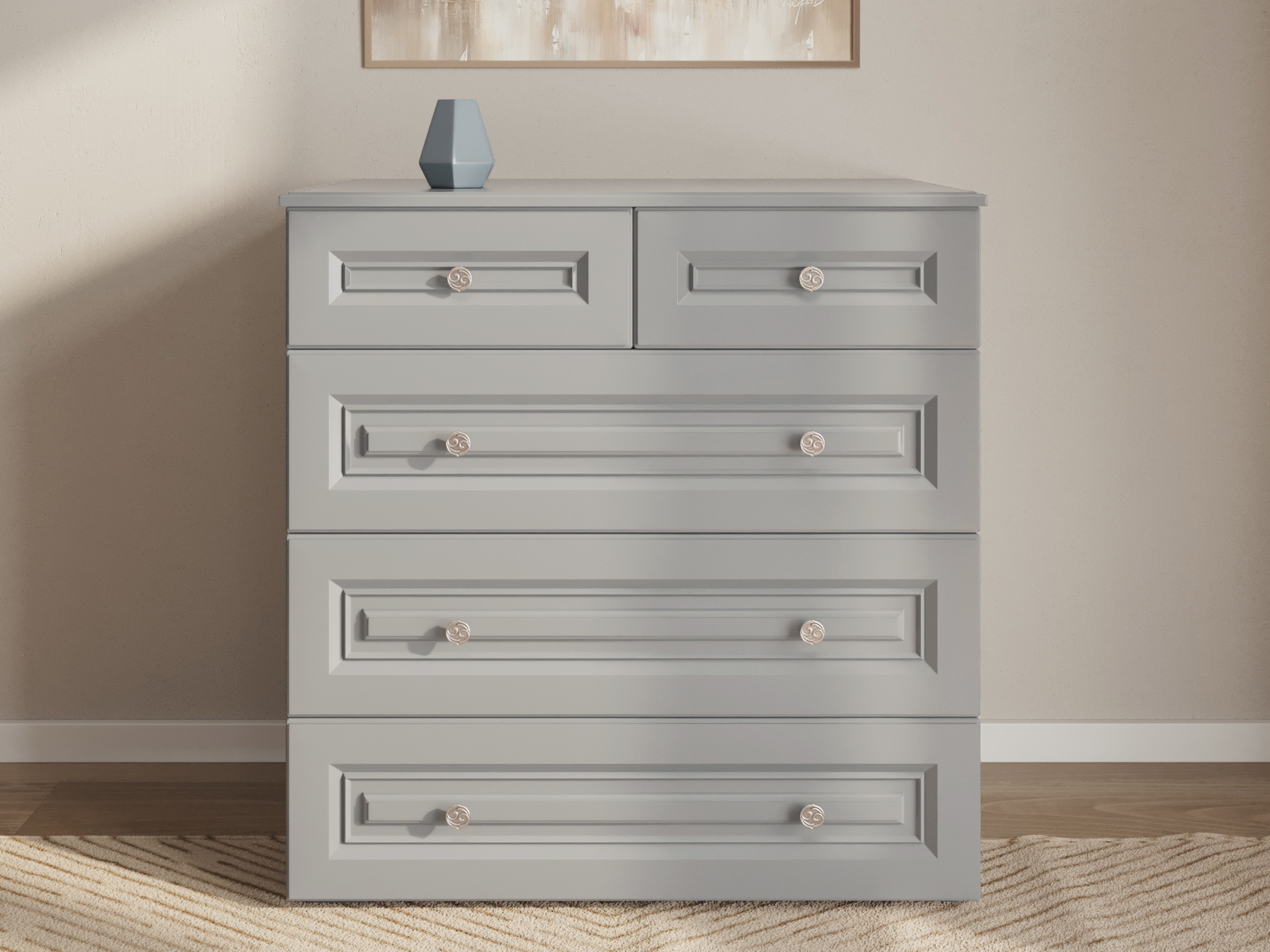 Модульные спальни Аврора помогут обустроить интерьер в классическом стиле. Изысканное цветовое решение создает уютную расслабленную атмосферу. Изящный орнамент ручек и декоративная фрезеровка подчеркивают утонченный облик мебели.
