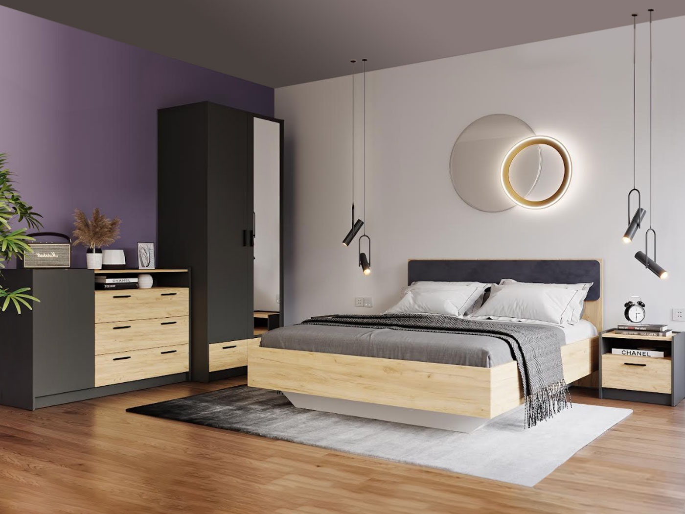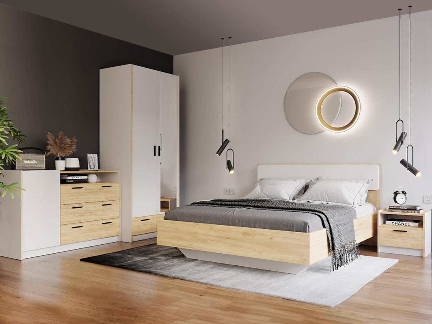 Модульная спальня Оттавия состоит из функциональных элементов, с которыми легко создать комфортный и уютный интерьер. Матовые однотонные фасады удачно сочетаются с теплой древесной текстурой. Такое оформление смотрится очень привлекательно и оживляет обстановку.