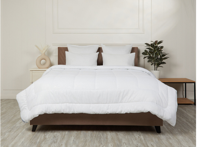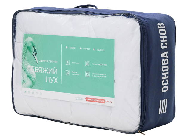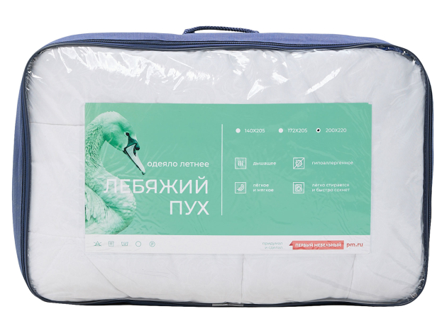 Одеяло Лебяжий пух облегченное легкое, мягкое и пышное. Уникальный по своим свойствам наполнитель обеспечивает оптимальный баланс влаги и температуры во время сна. Стеганый чехол с атласным кантом приятен на ощупь, не скатывается и пропускает воздух. Одеяло можно стирать в холодной воде, используя деликатный режим.