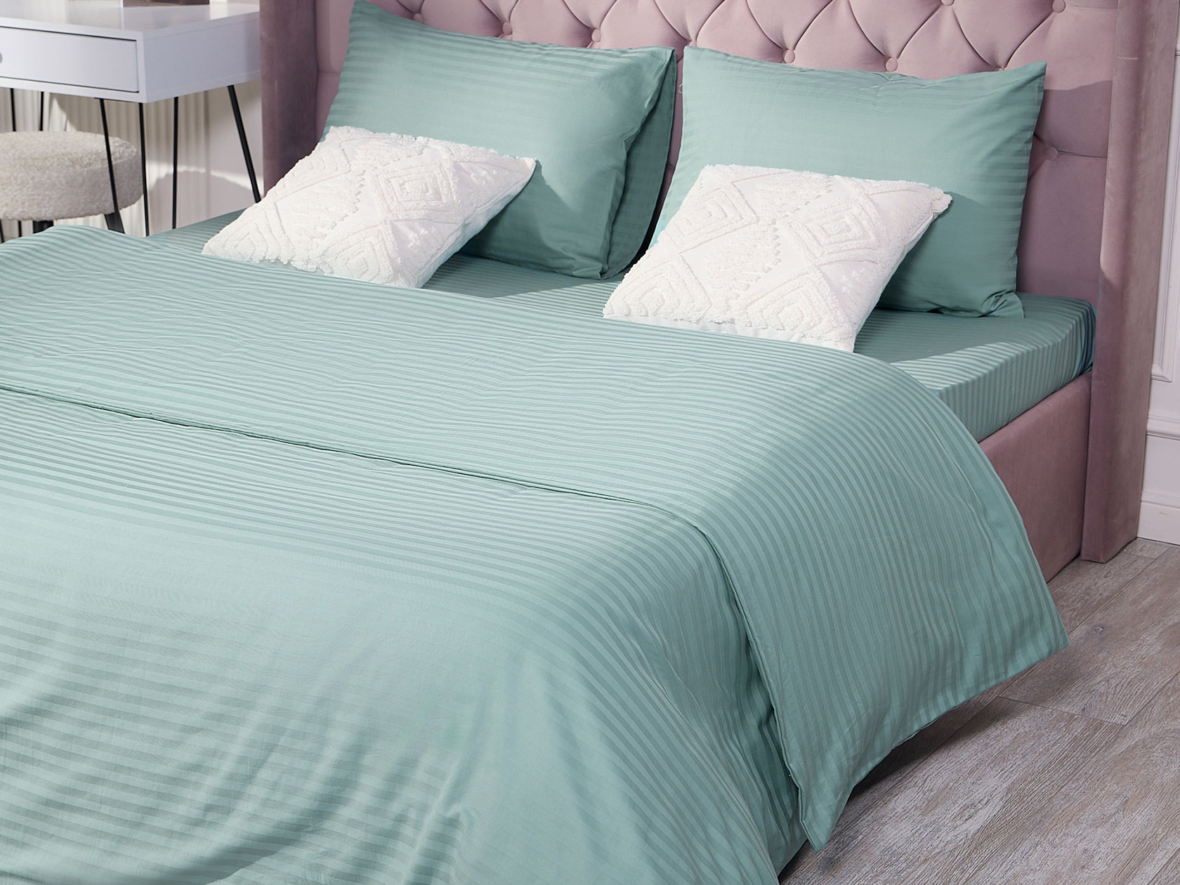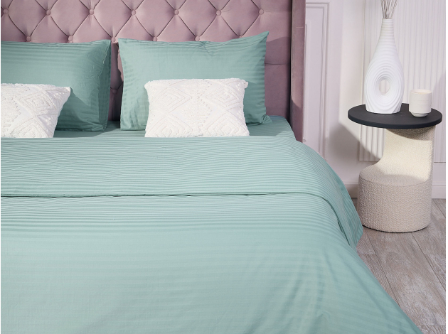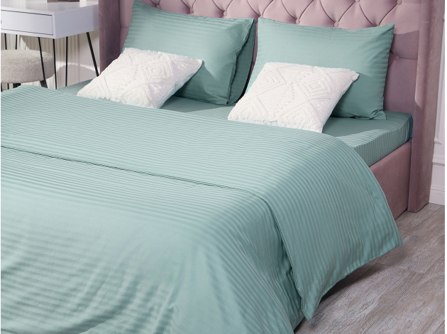 Постельное белье выполнено из ткани сатин-страйп (100% хлопок).