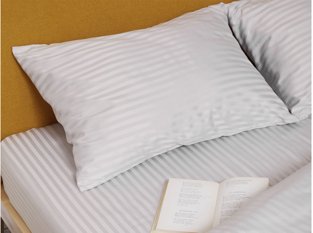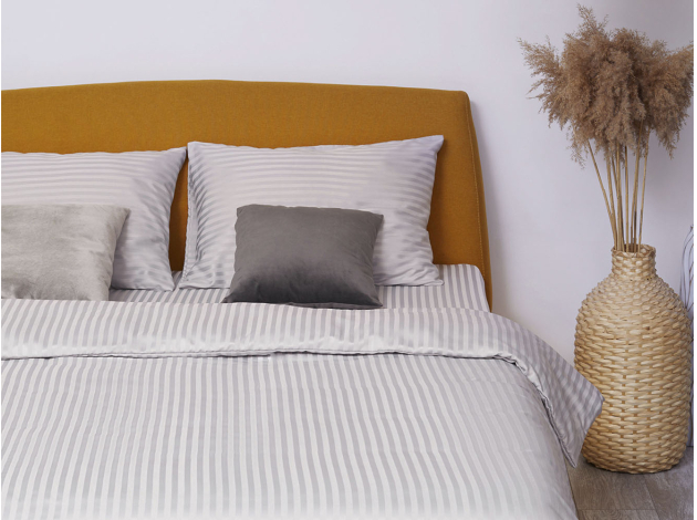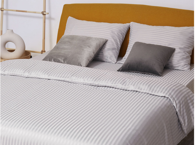 Постельное белье выполнено из ткани бамбук-страйп (100% полиэстер).
