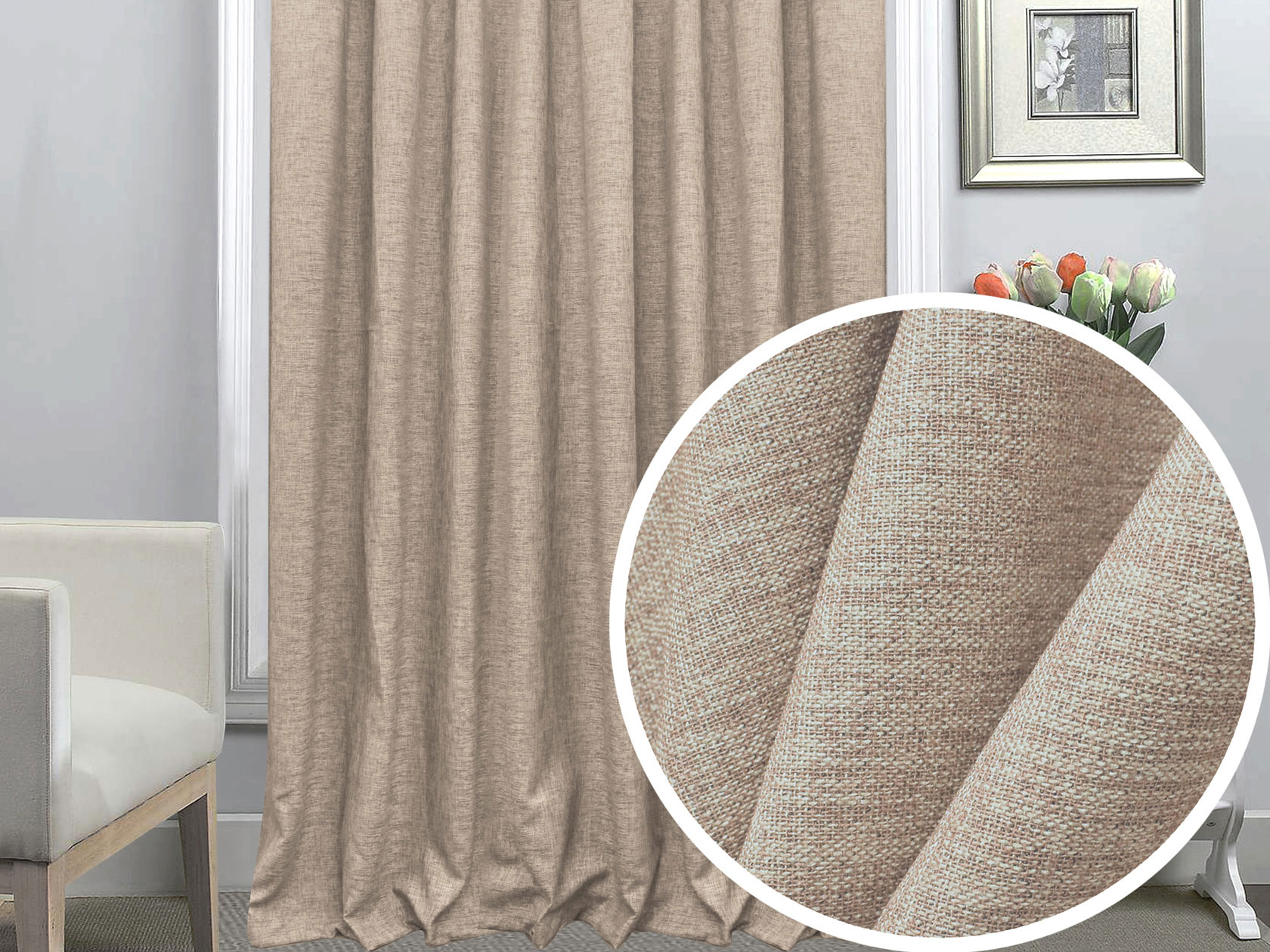 - Материал шторы: блэкаут лен (100% полиэстер).