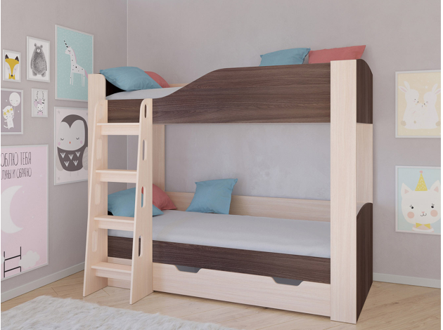 Двухъярусная кровать Астра 2 Дуб Молочный / Дуб Шамони С ящиком