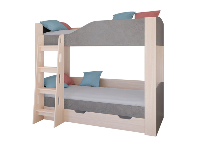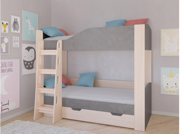 Двухъярусная кровать Астра 2 Дуб Молочный / Железный камень С ящиком
