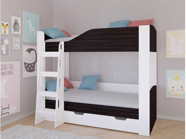 Двухъярусная кровать Астра 2 Белый / Венге С ящиком