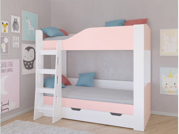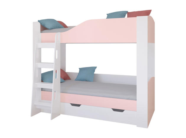Двухъярусная кровать Астра 2 Белый / Розовый С ящиком