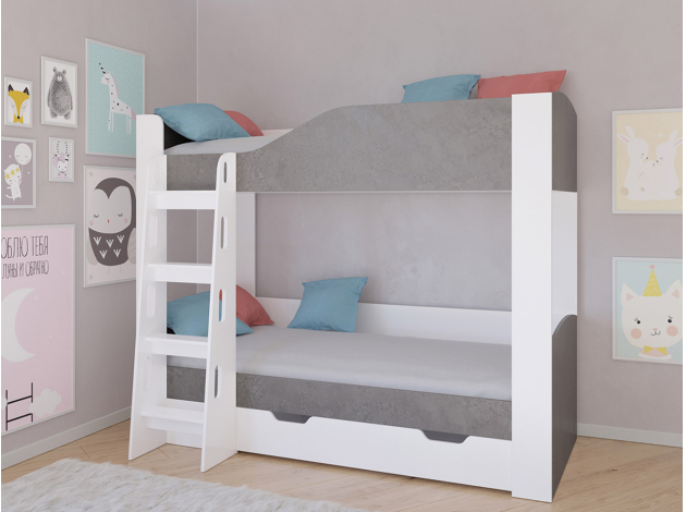 Двухъярусная кровать Астра 2 Белый / Железный камень С ящиком