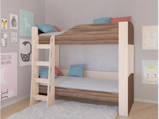 Двухъярусная кровать Астра 2 Дуб Молочный / Орех Без ящика