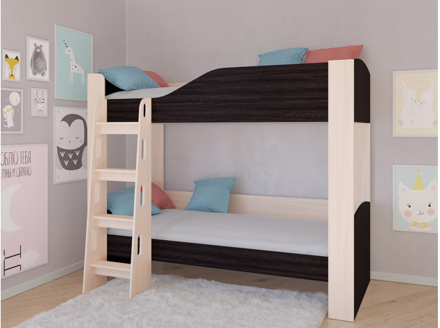 Двухъярусная кровать Астра 2 Дуб Молочный / Венге Без ящика