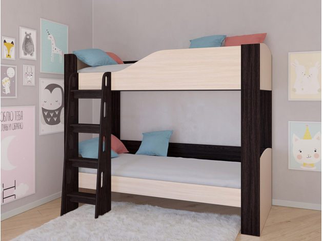 Двухъярусная кровать Астра 2 Венге / Дуб Молочный Без ящика