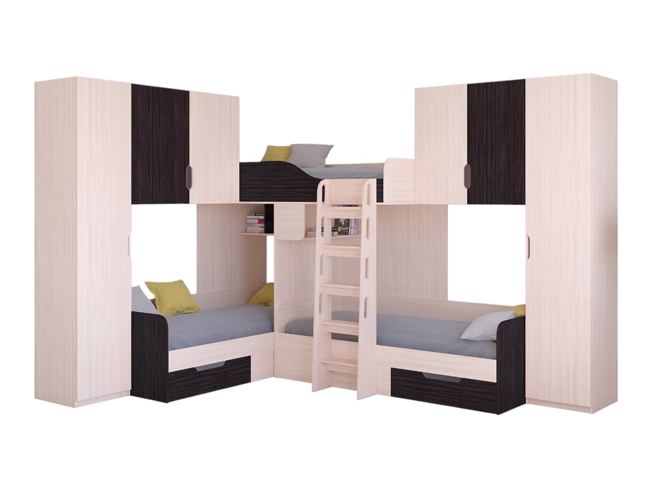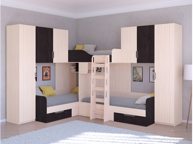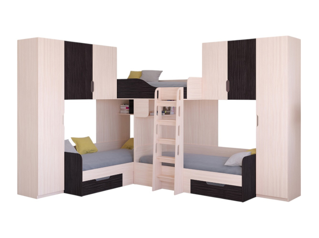 Двухъярусная кровать Трио 3 Дуб Молочный / Венге