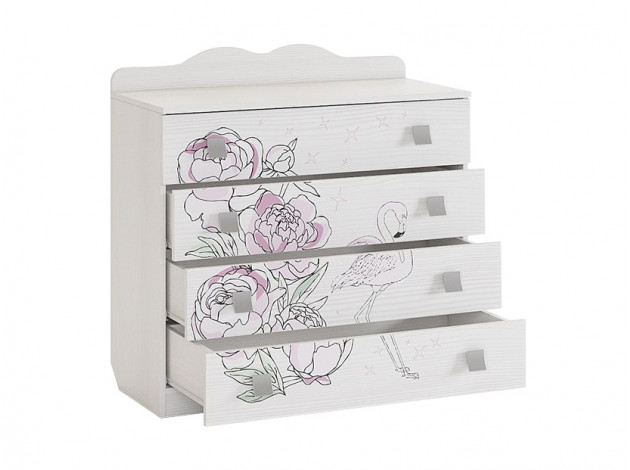 Оригинальный детский комод Фэнтези с изящным принтерным рисунком будет радовать вас и вашего ребенка каждый день. Комод выполнен в нежных тонах и прекрасно сочетается с другими элементами мебели из модульной коллекции Фэнтези.
