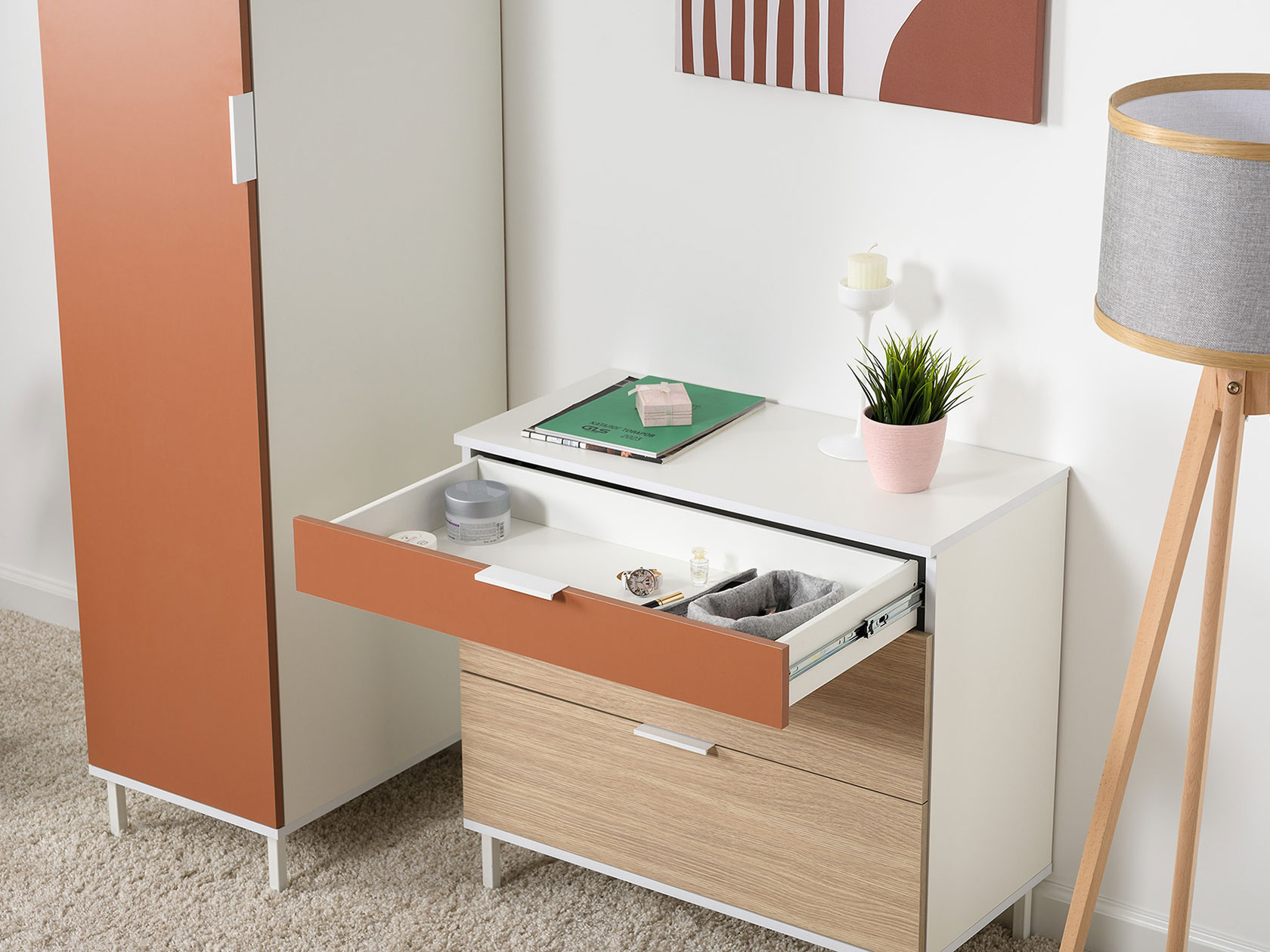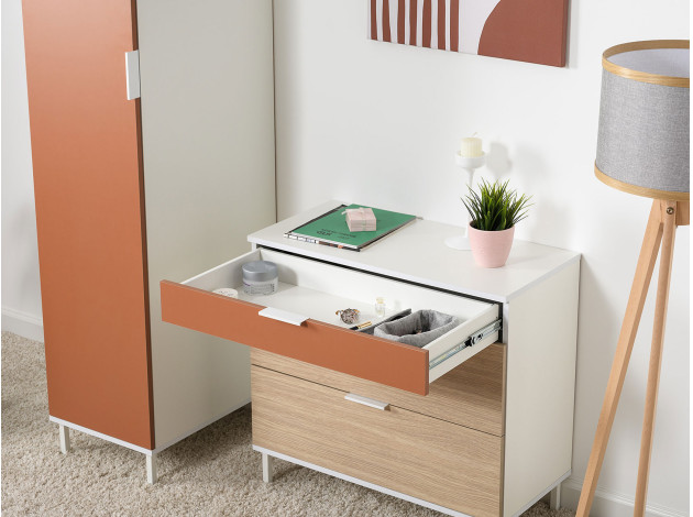 Детский комод Марвэл 3 ящика поможет поддерживать порядок в одежде и школьных принадлежностях. Ящики плавно выдвигаются на всю глубину, поэтому в них легко найти нужную вещь. Сочетание оттенков и текстур делает интерьер более выразительным, а удобные ручки — лаконичным и не перегруженным деталями.