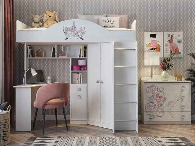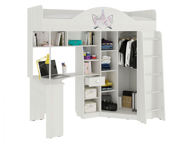 Кровать-чердак Фэнтези — функциональная модель, которая объединила в себе всё необходимое для учебы, игр, хранения и отдыха. Угловое расположение рабочей зоны и шкафа позволяет максимально эффективно использовать площадь помещения. Благодаря многочисленным разноплановым отделениям ребенку будет легко поддерживать порядок в комнате.