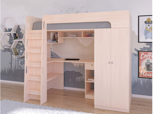 Кровать-чердак Астра 10 Дуб Молочный