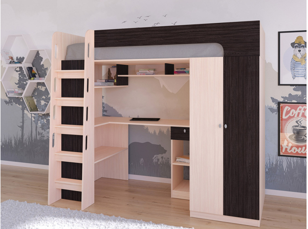 Кровать-чердак Астра 10 Дуб Молочный / Венге