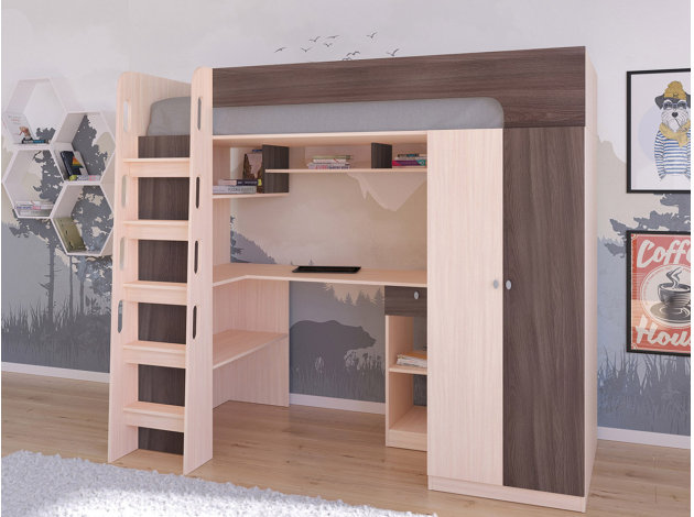 кровать-чердак просто отличная. сделана добротно.один маленький минус-очень крутая лестница и не за что ухватиться. пришлось дополнительно покупать поручни и укреплять из на лестнице