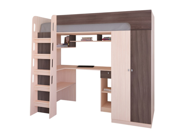 Кровать-чердак Астра 10 Дуб Молочный / Дуб Шамони