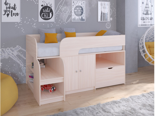 Невысокая детская кровать-чердак Астра 9/4 — это компактный размер и практичное исполнение, дополненные разнообразием цветовых решений. Модель подойдет к практически любому интерьеру детской комнаты.