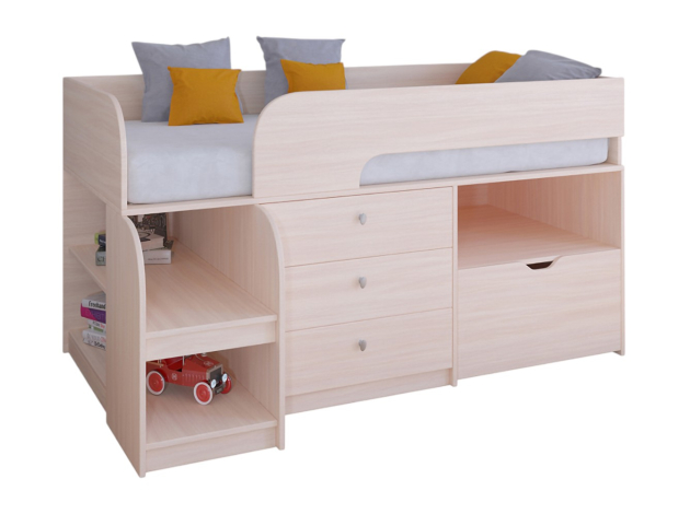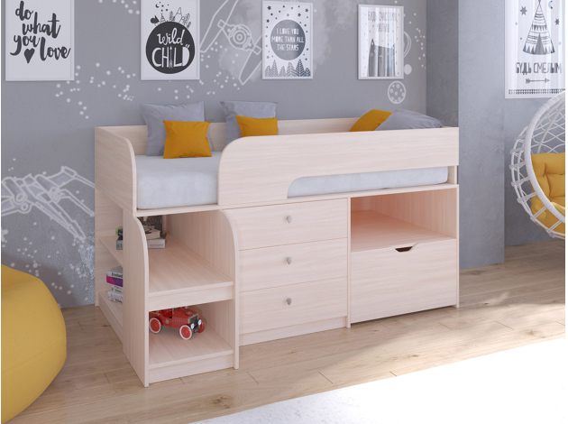 • Невысокая детская кровать-чердак Астра 9/5 — это продуманная система хранения, которая позволит ребенку самостоятельно научиться размещать вещи и игрушки по местам.