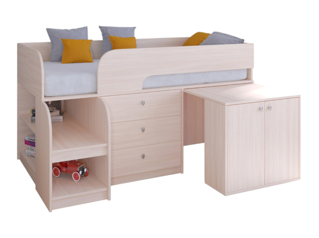 • Невысокая детская кровать-чердак Астра 9/7 — это продуманная система хранения, которая позволит ребенку самостоятельно научиться размещать вещи и игрушки по местам. Выдвижной столик-тумба обеспечит удобное рабочее место для игр, учебы или творчества.