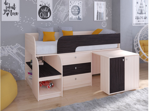 • Невысокая детская кровать-чердак Астра 9/7 — это продуманная система хранения, которая позволит ребенку самостоятельно научиться размещать вещи и игрушки по местам. Выдвижной столик-тумба обеспечит удобное рабочее место для игр, учебы или творчества.