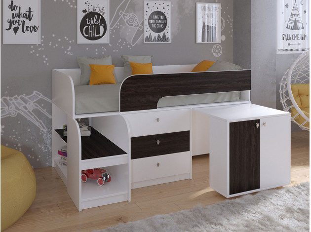 Невысокая детская кровать-чердак Астра 9/7 — это продуманная система хранения, которая позволит ребенку самостоятельно научиться размещать вещи и игрушки по местам. Выдвижной столик-тумба обеспечит удобное рабочее место для игр, учебы или творчества.